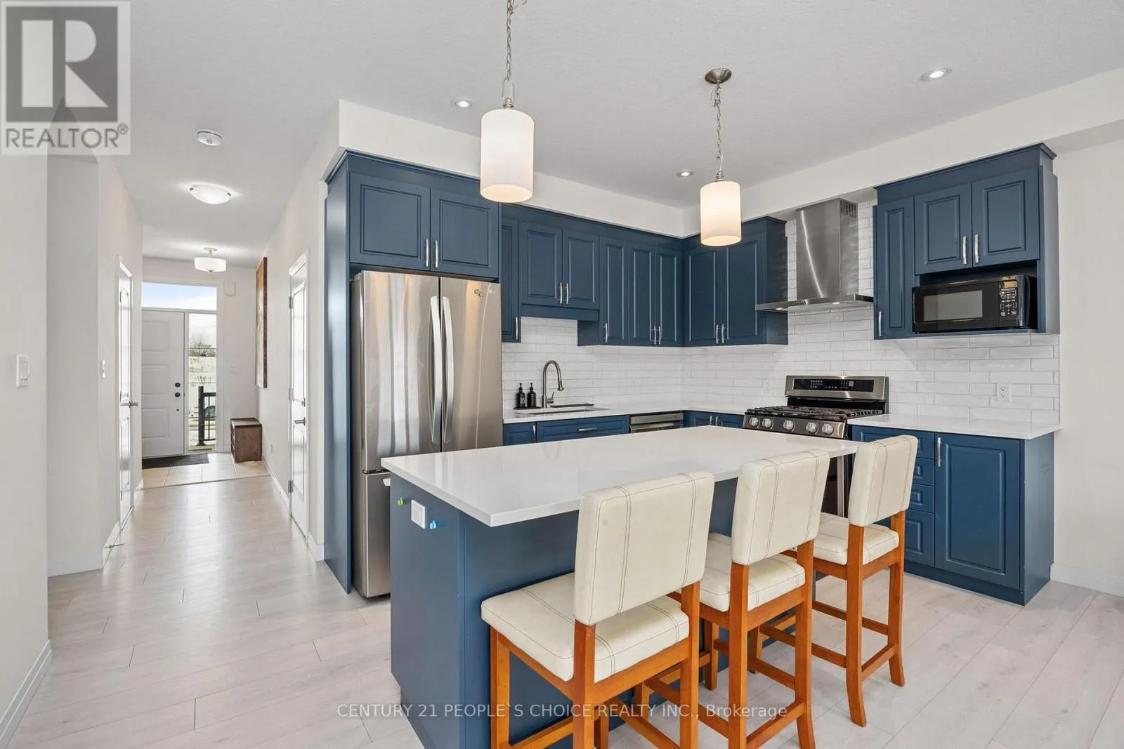 Welcome to this stunning 3-bedroom, 4-bath freehold townhome in one of Cambridge’s most desirable communities, offering a perfect blend of style, comfort, and functionality. The bright open-concept main floor features a modern upgraded kitchen with extended cabinetry, sleek quartz countertops, stainless steel appliances, and an oversized breakfast bar. The second floor includes three spacious bedrooms, highlighted by a generous primary