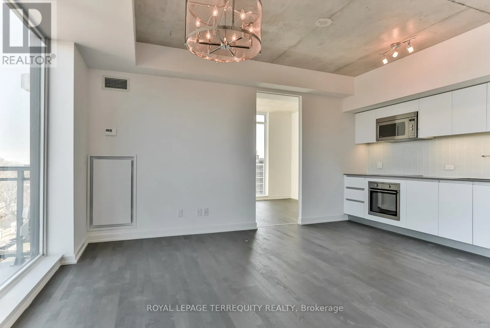 Prime Leslieville living at its best. This ultra-stylish, split 2-bed suite sits high above the city in an intimate boutique building, featuring exposed concrete ceilings, integrated kitchen cabinetry, and sleek built-in appliances. Brilliant south-east light pours through floor-to-ceiling windows, offering unobstructed, panoramic views. Steps to Queen Street’s trend-setting shops, cafes, and eclectic dining. Minutes to the downtown core, DVP, Gardiner,