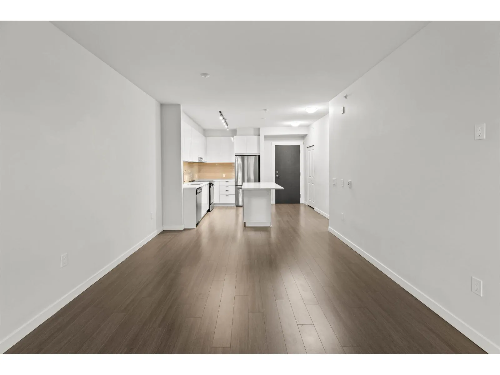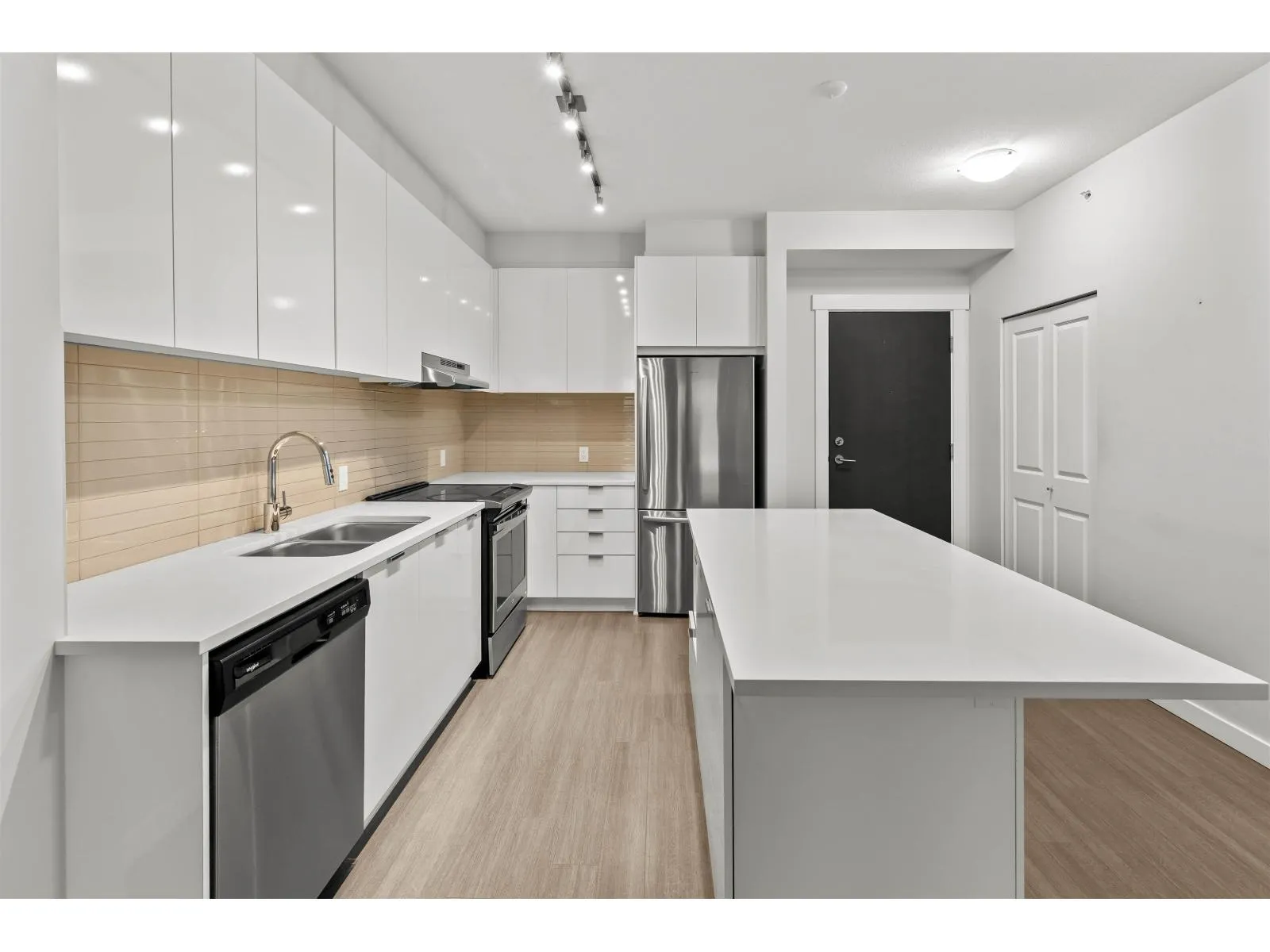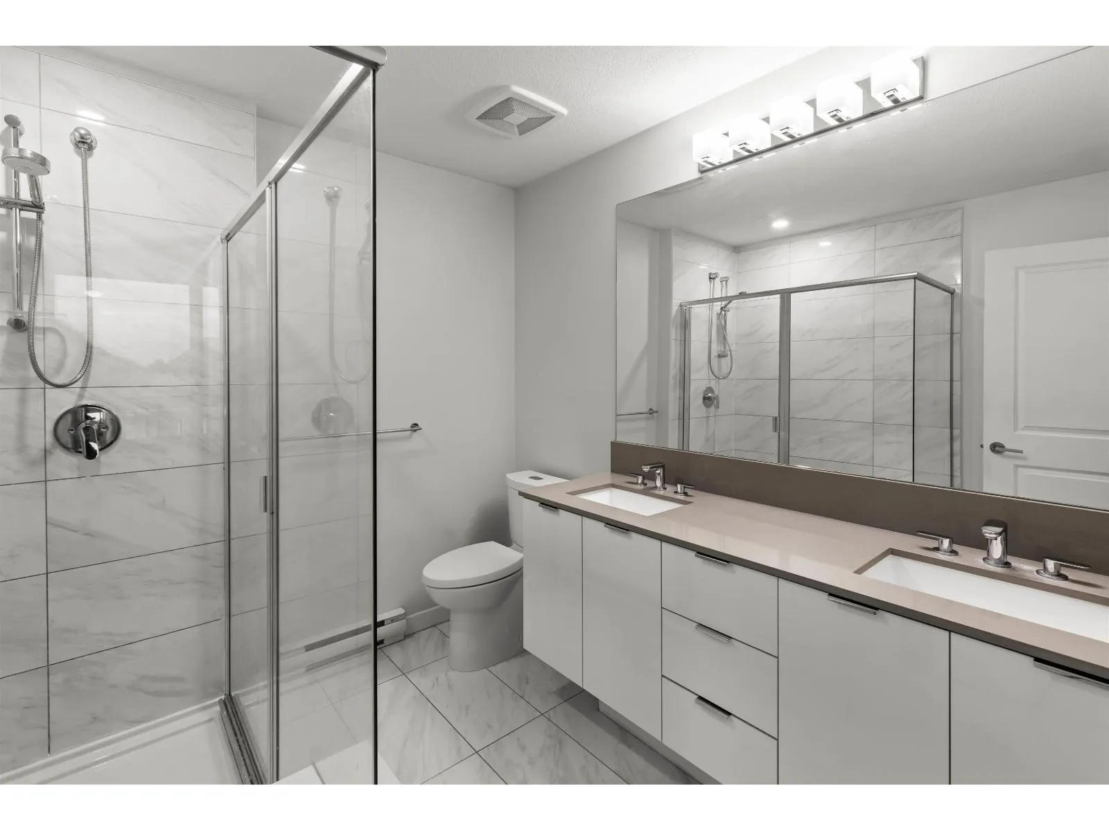 TOP FLOOR home at Elmstone by Polygon offering a thoughtfully designed 2-bedroom, 2-bathroom layout with over 850 sq.ft. of bright, open-concept living. This top-floor residence features an oversized private balcony, ideal for relaxing or entertaining. The spacious primary bedroom includes a walk-in closet and a spa-inspired ensuite with double sinks and a large walk-in shower. The modern kitchen is designed