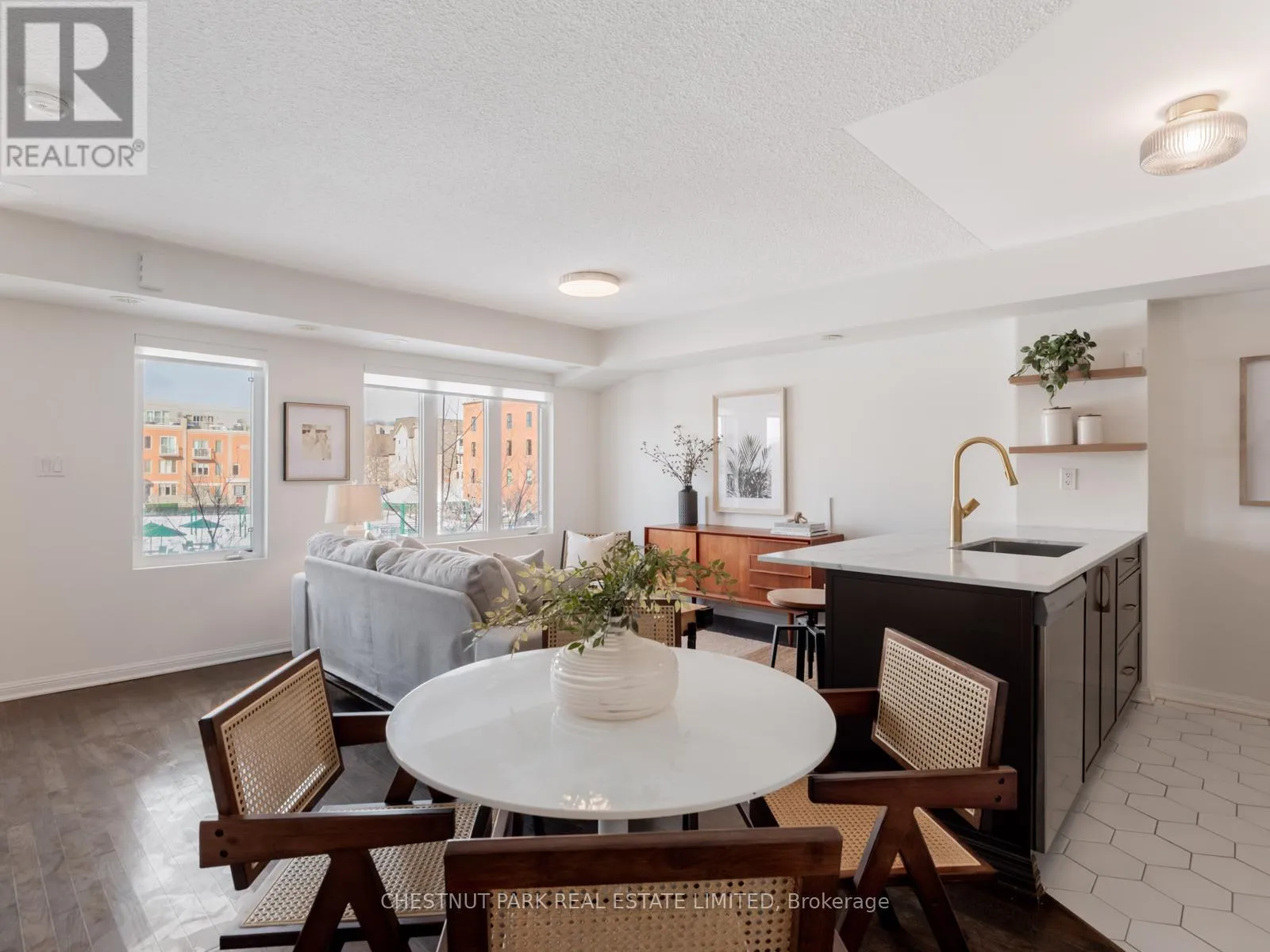 Wake up to postcard-worthy, unobstructed views over Davenport Village Park – your own manicured green “front yard,” with a playground and splash pad, and none of the upkeep. A serene, show-stopping outlook that makes everyday living feel like a treat. This beautifully renovated upper unit, three-storey 2+1 bed, 2-bath townhome offers 1,195 sq ft of polished living space plus an