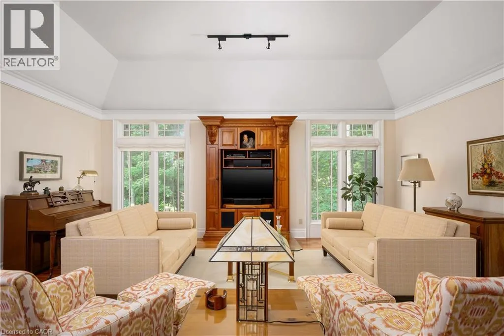 Welcome to 276 Carrington Place, truly your city home surrounded by nature. This prestigious Beechwood bungalow is perfectly located on a quiet court backing onto greenspace and trails. The home features 3 bedrooms and 5 bathrooms, set on a large, .90 acre private lot. Step into the grand foyer that opens into the spacious living room with soaring ceilings and