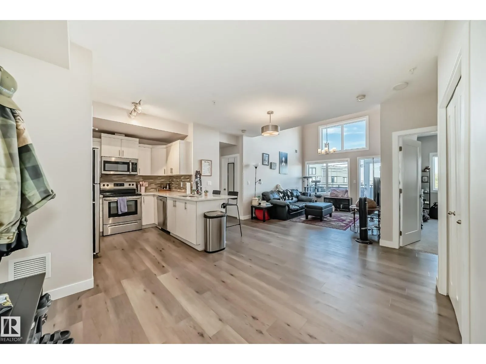 The Connaught at Griesbach – Welcome home to this stunning top-floor, north-facing 2 bedroom, 2 bathroom suite featuring a bright open-concept design and modern finishes throughout. With a builder’s size of 1,000 sq. ft., this suite offers quartz countertops, soft-close cabinetry, and low-maintenance vinyl plank flooring in the main living areas, complemented by plush carpet in the bedrooms. The