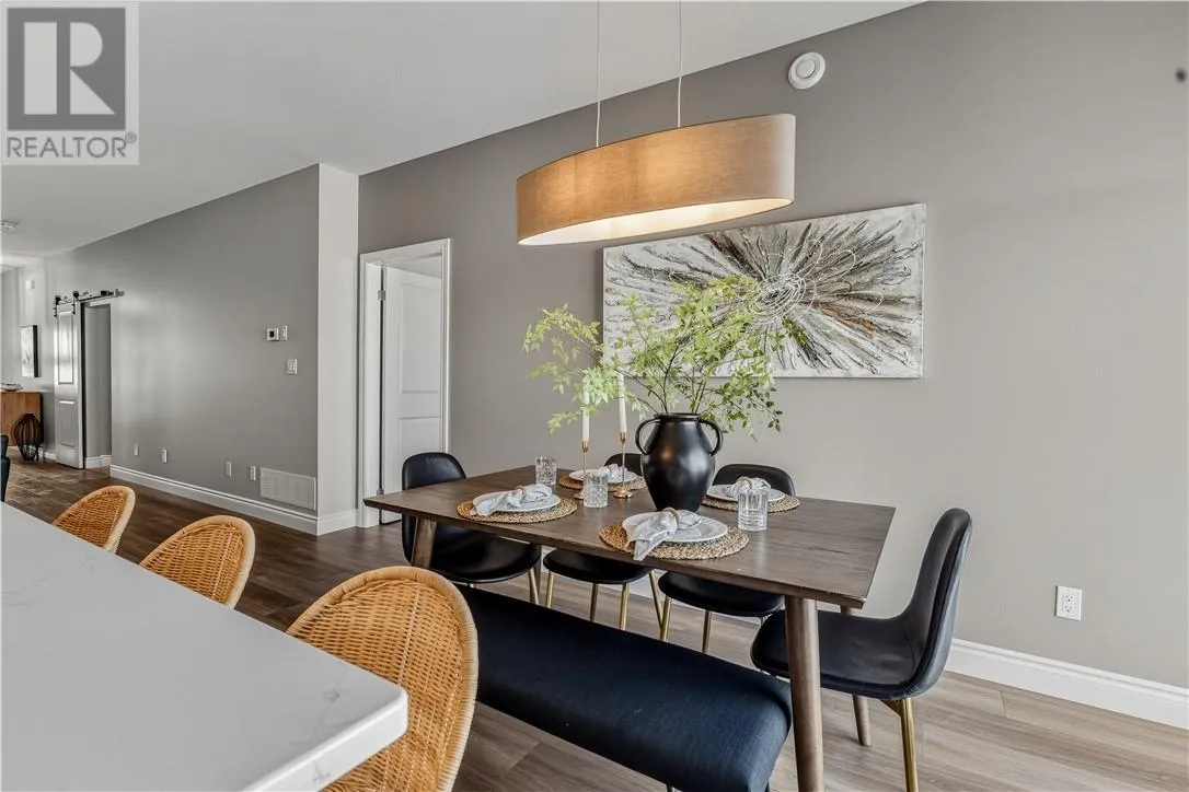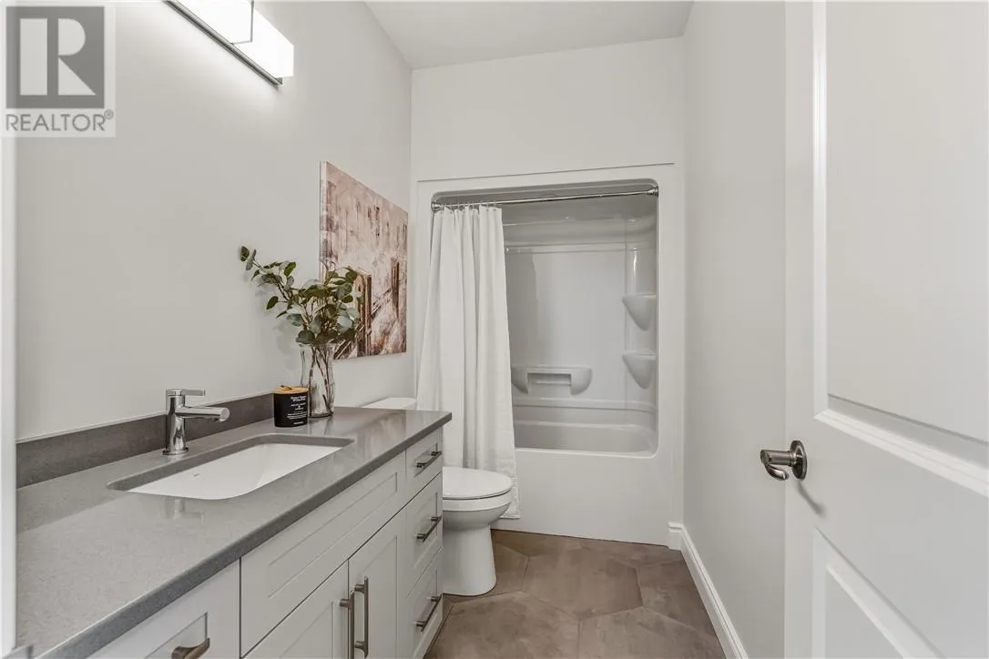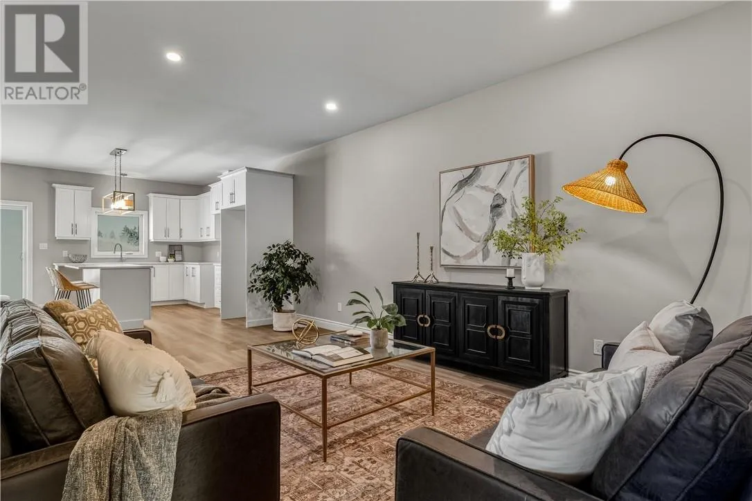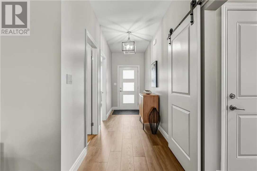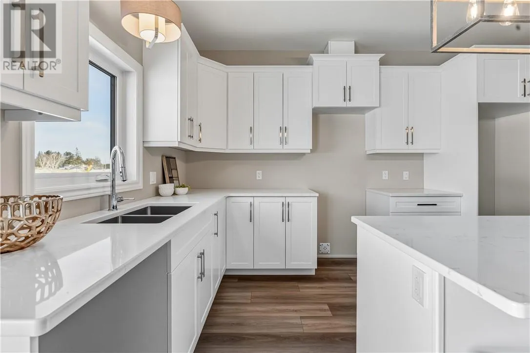 Welcome to this brand new, quality-built home by Belmar Builders, located in the desirable New Dominion Park subdivision. This thoughtfully designed grade-entry home offers over 1,300 sq. ft. of finished main-level living, featuring an open-concept floor plan with 9-foot ceilings and a bright, modern aesthetic throughout. The heart of the home showcases white shaker cabinetry, quartz countertops, and durable, stylish