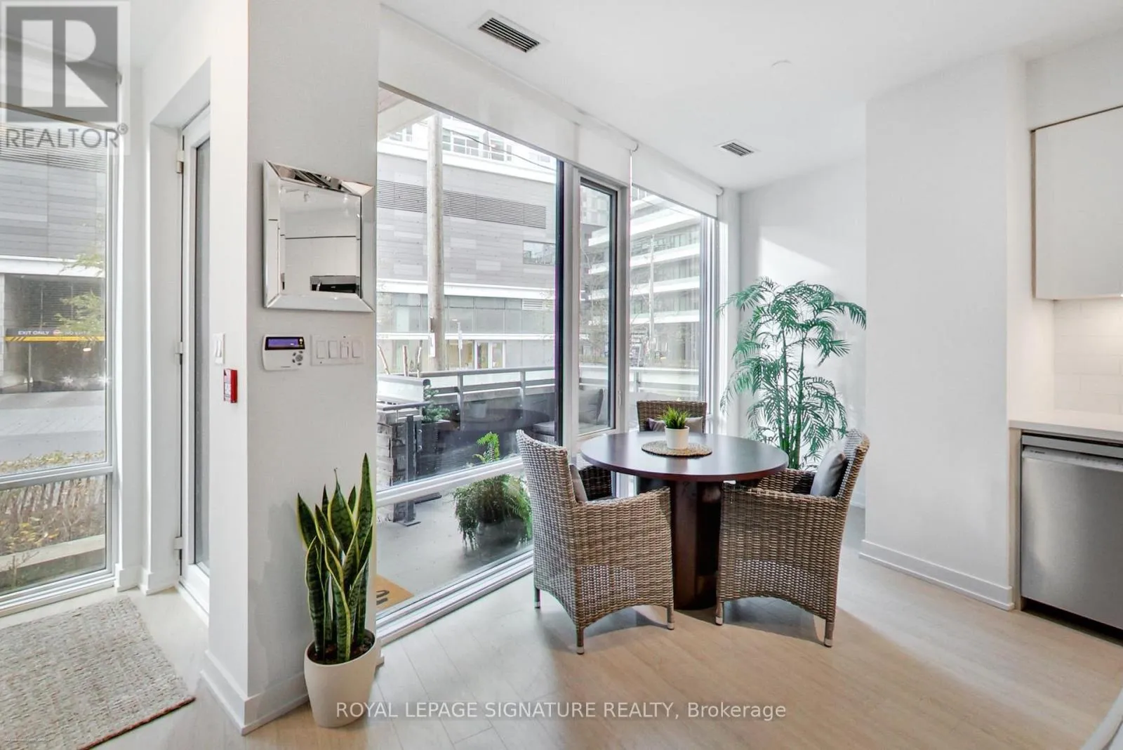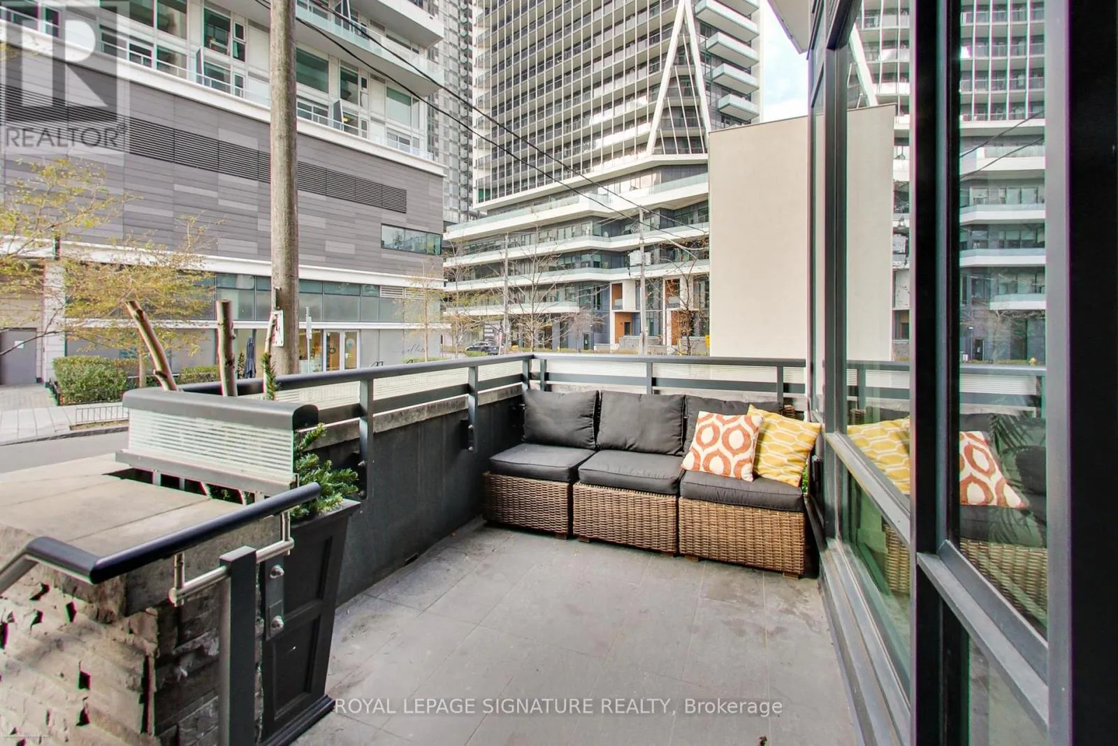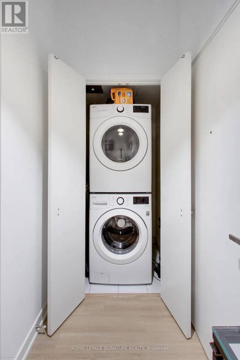 Stunning 2-storey, 2-bedroom plus den, 2-bath townhouse-style condo offering nearly 1,300sqft of bright, modern living in the heart of Liberty Village. This rare multi-level layout features a private street-level entrance, a spacious front terrace ideal for outdoor dining, and an additional upper-level balcony off the loft. The open-concept main floor boasts soaring ~10ft ceilings, wide-plank flooring, floor-to-ceiling windows, and a