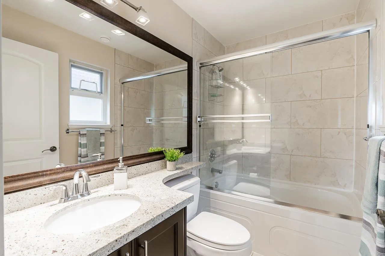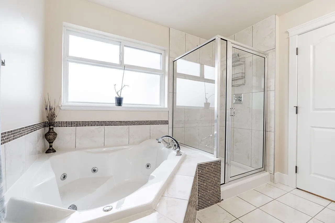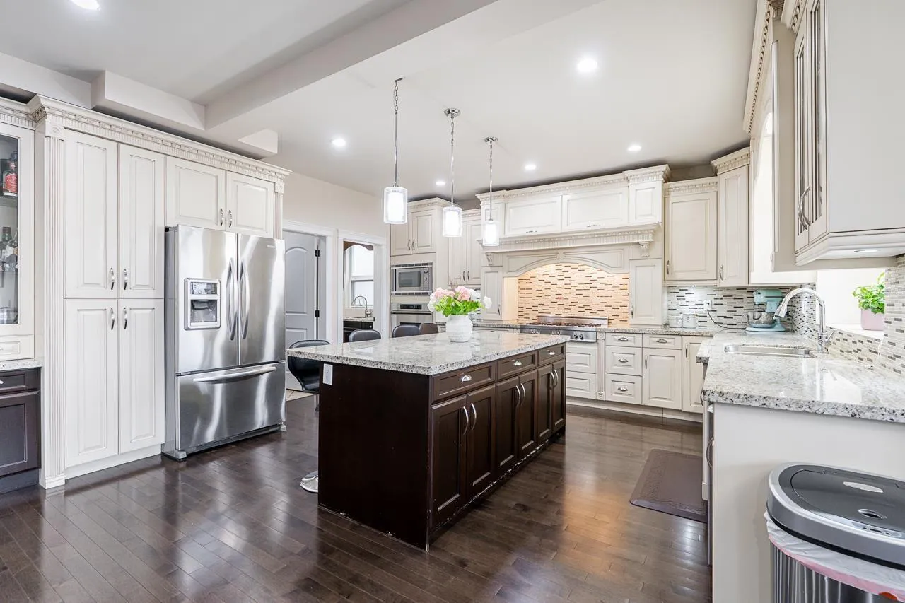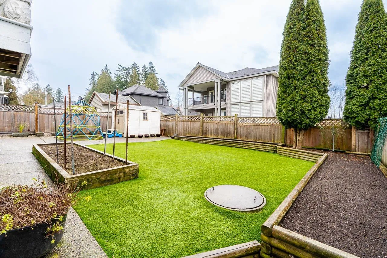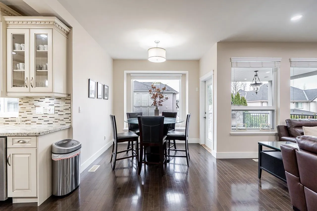 This custom-built home in Cloverdale stands out with thoughtful upgrades such as A/C & quality finishings. The main floor is bright & open with 10′ ceilings. The kitchen boasts a gas cooktop, antique white cabinets, granite countertops, S/S appliances & large island, perfect for gatherings. The living & dining area seamlessly flows out to a huge covered patio w/a outdoor
