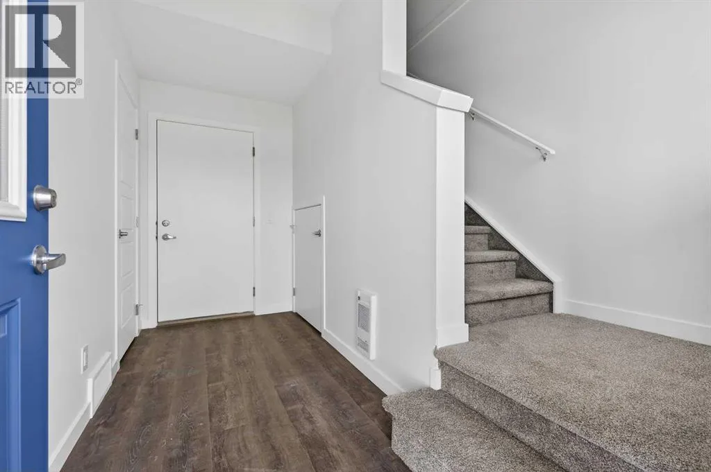 complemented by a versatile lower-level den perfect for a home office or quiet retreat. The heart of the home is an inviting open-concept main floor, anchored by a large gourmet kitchen featuring a functional breakfast bar for casual dining. This bright living space transitions seamlessly to a private balcony, offering a perfect setting for outdoor relaxation.The interior showcases high end craftsmanship, including modern dark slab-style cabinetry with a full bank of drawers for maximum storage. The kitchen is further elevated by polished white quartz countertops and a full suite of premium stainless steel appliances. Durable luxury vinyl flooring runs throughout the primary living areas, while the stairs and upper level are finished with plush carpet over an 8lb underlay for superior comfort. Additional conveniences include an attached double car garage, professionally maintained landscaping, and a lifestyle defined by maintenance free living.Life at Sirocco Gate East in Southwest Calgary is about more than just living—it’s about thriving. Imagine having a picturesque central green space at your doorstep, offering opportunities for both tranquil reflection and vibrant community events. Residents enjoy the luxury of sophisticated townhome living with the Rocky Mountains as a backdrop and easy access to both Stoney Trail and Macleod Trail. With daily essentials located in nearby shopping centers, this home offers the perfect blend of scenic serenity and urban convenience. (id:62650)