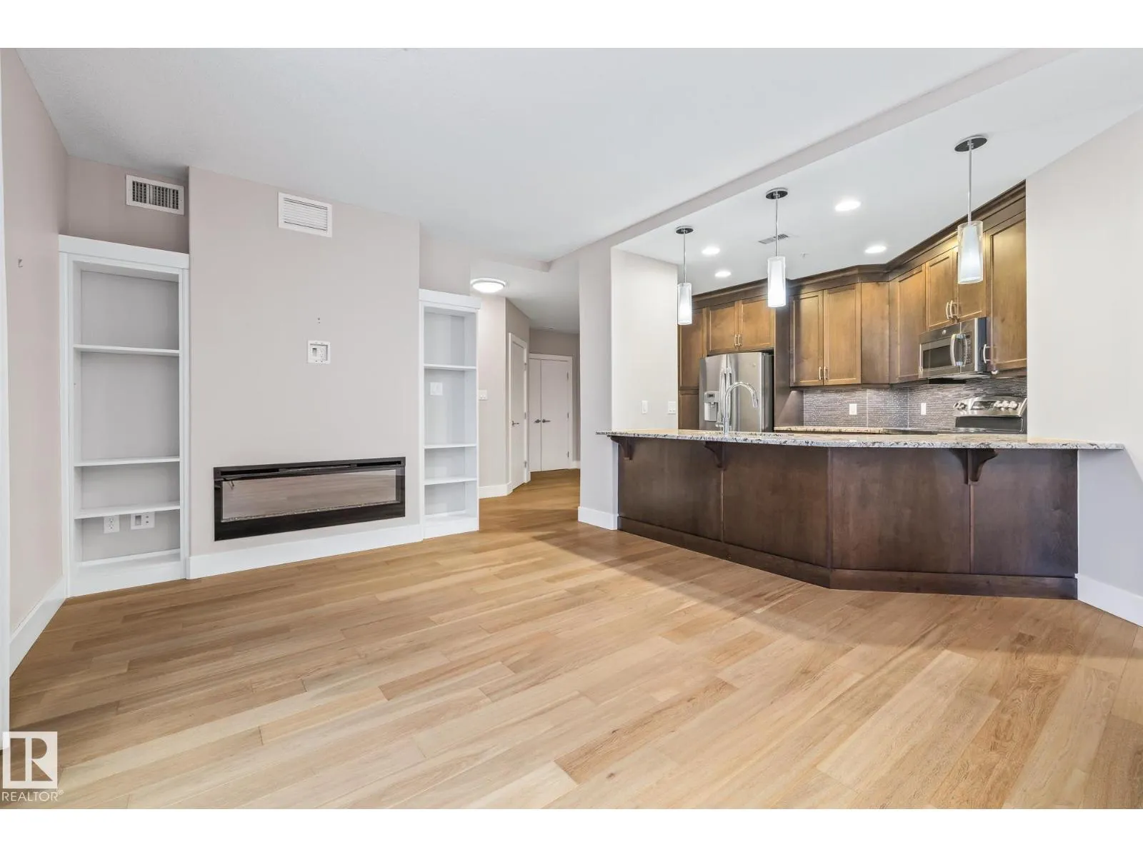This immaculate building was built to impress from being built out of concrete & steel to the unique designs of the units themself. Modern and Elegant, this 2 bedroom and 2 bath unit features large windows, a gourmet kitchen with eating bar, upgraded stainless steel appliances, quartz counters, a built-in pantry, and spacious dining & living room. The luxurious master