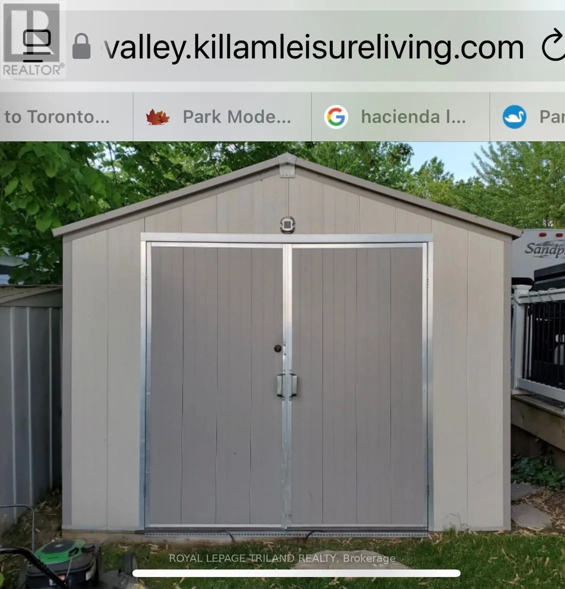 3 Season Northlander Cottage Classic Park Model (2004) in Paradise Valley. Renovated in 2020. Fully furnished including all furniture, appliances, 3 TV’s and the BBQ. Spacious kitchen and living area. Two bedrooms. Bathroom with full size toilet and tub/shower combo. Wrap around deck is mostly covered. Tankless water heater, forced air gas furnace and central air. Newer roof. Shed included.