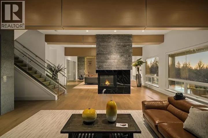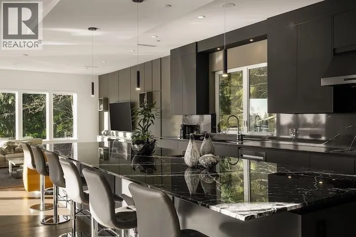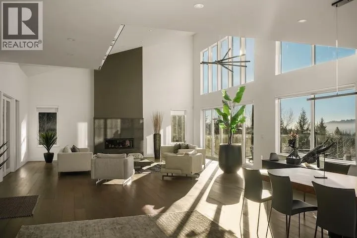 When architecture, setting, & privacy converge, the result is extraordinary. Welcome to 205 Kinsey Drive in Anmore. Privately gated & framed by manicured grounds, this contemporary estate is inspired by sweeping mountain and SFU views. The interior unfolds in a dramatic open plan with soaring ceilings, expansive walls of glass and stone, and a statement black Italian kitchen anchored by
