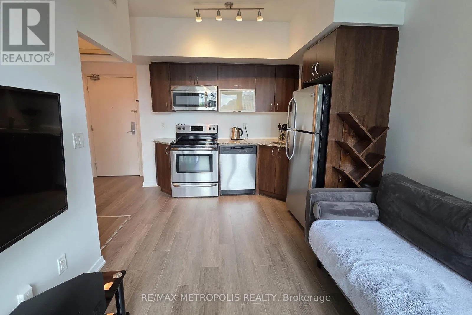 (Open House every Sat/Sun 24pm by appointment). Welcome to your new home in the heart of Liberty Village! This charming 1 bedroom condo at 55 East Liberty St offers 445 square feet of beautifully designed living space, perfect for the modern urban dweller. As you step inside, you’ll immediately notice the brand new laminate flooring that extends throughout the unit,