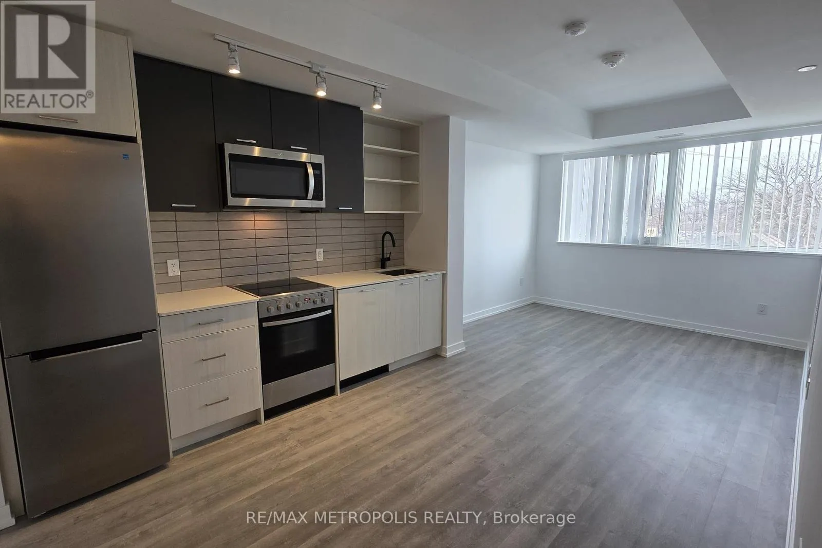 (Open house every Sat/Sun 2-4pm by appointment only.) Welcome to Stockyard Condos by Marlin Spring Developments nestled in the heart of The Junction a prestigious Toronto neighbourhood. Located on the 3rd floor with a South exposure, this spacious 2 bedroom suite offers 607 sq ft of living space, tons of natural light, modern finishes, laminate flooring throughout, ensuite laundry and