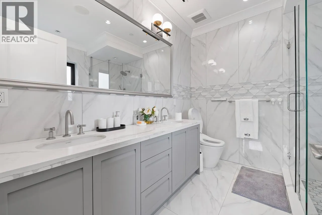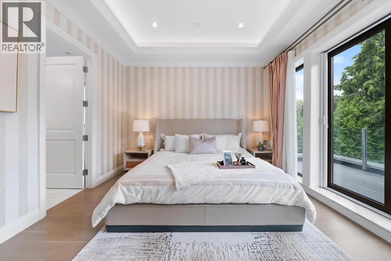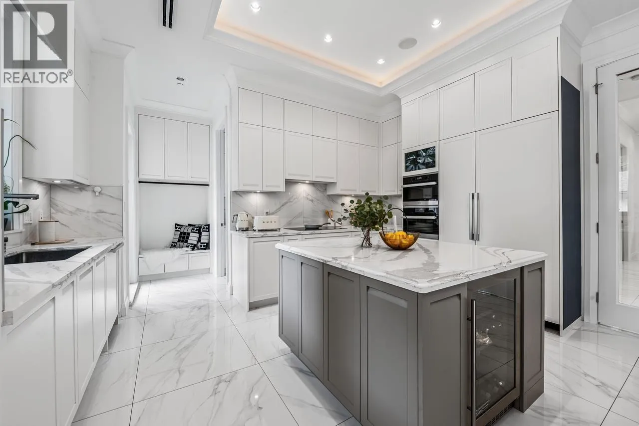 Exquisite custom-built residence in sought-after Kerrisdale, set on a serene, tree-lined street on a level, south-facing 7,920 square ft lot. This luxurious home offers 6 beds & 7 bathrooms, showcasing exceptional craftsmanship and refined finishes throughout.The thoughtfully designed layout is both highly functional and rich in architectural detail. The upper level features 4 spacious bedrooms, each with its own ensuite.