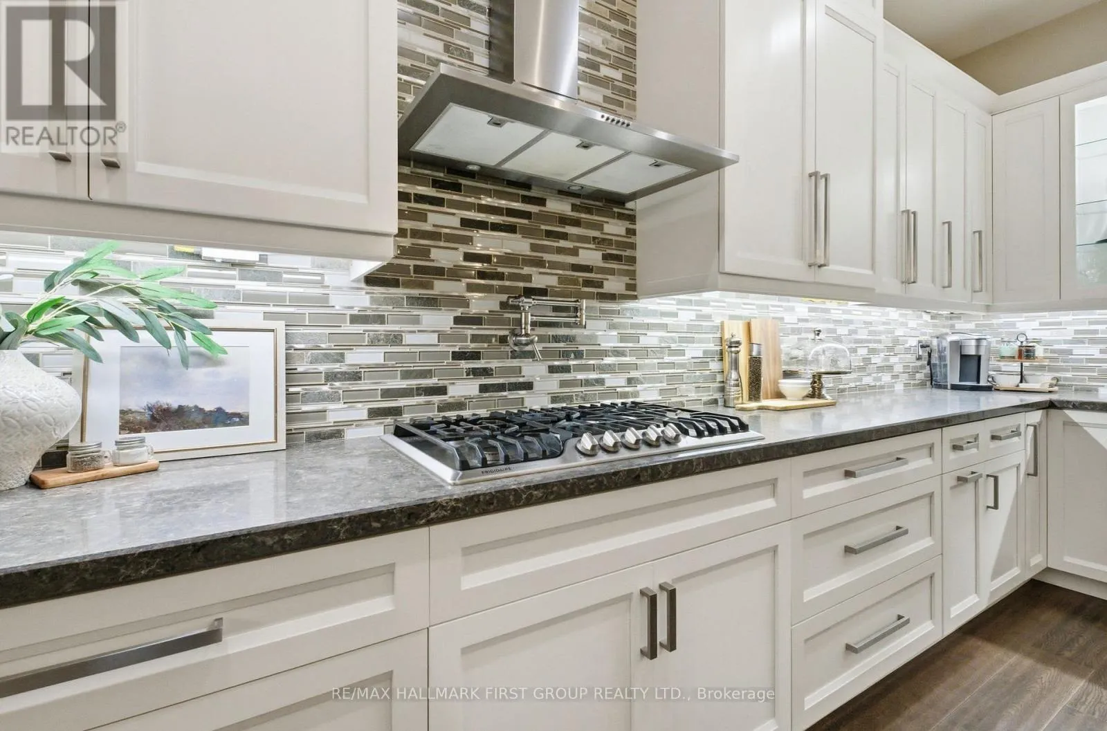 A rare offering in central Pickering-this custom-built bungalow blends timeless architecture with modern luxury, steps from one of the city’s top-rated elementary schools. From the moment you walk in, soaring 10ft ceilings and a dramatic 15ft vaulted great room set an unmistakably upscale tone.The open-concept layout delivers over 2,500sqft of refined main-floor living, perfectly suited for both large families and