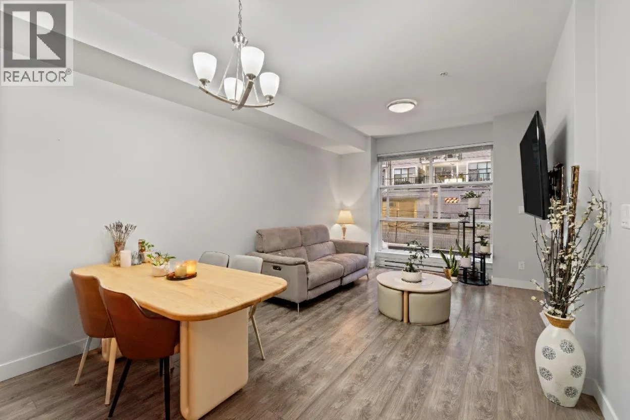 Welcome to this stunning 1 bedroom, 1 bathroom home in a boutique building with only 34 residences. This open-concept suite features 9-foot ceilings, laminate hardwood flooring, and a thoughtfully designed layout with generous cupboard space. The kitchen is equipped with quartz countertops and stainless steel appliances, plus a full-size washer and dryer for added convenience. Enjoy spectacular outdoor living with