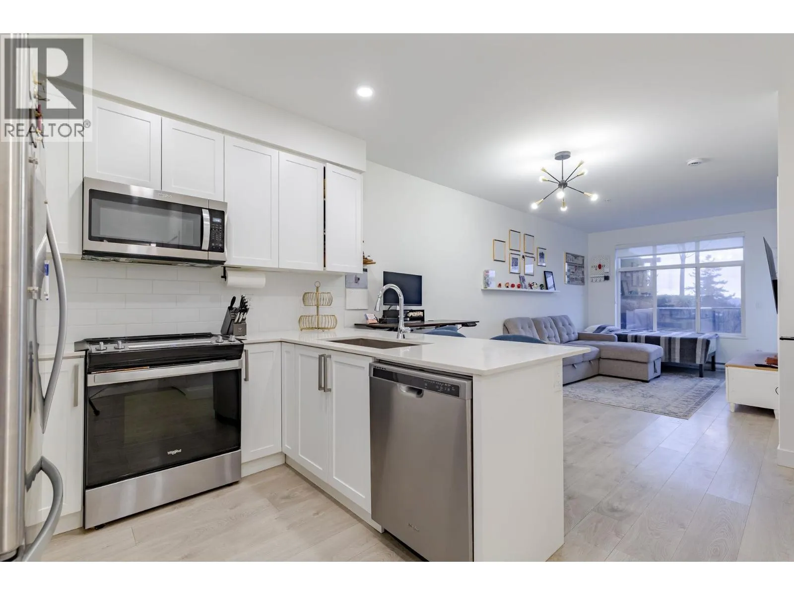 Welcome to OTTO by award-winning local developer Dolomiti Homes. This bright, south-facing residence offers a highly functional layout with no wasted space. The open-concept kitchen is thoughtfully designed with S/S appliances, quartz countertops, & a large single-basin sink. Step outside to unobstructed views of the Fraser River & Surrey skyline from your EXCEPTIONAL 414sqft PRIVATE patio-a RARE offering & one