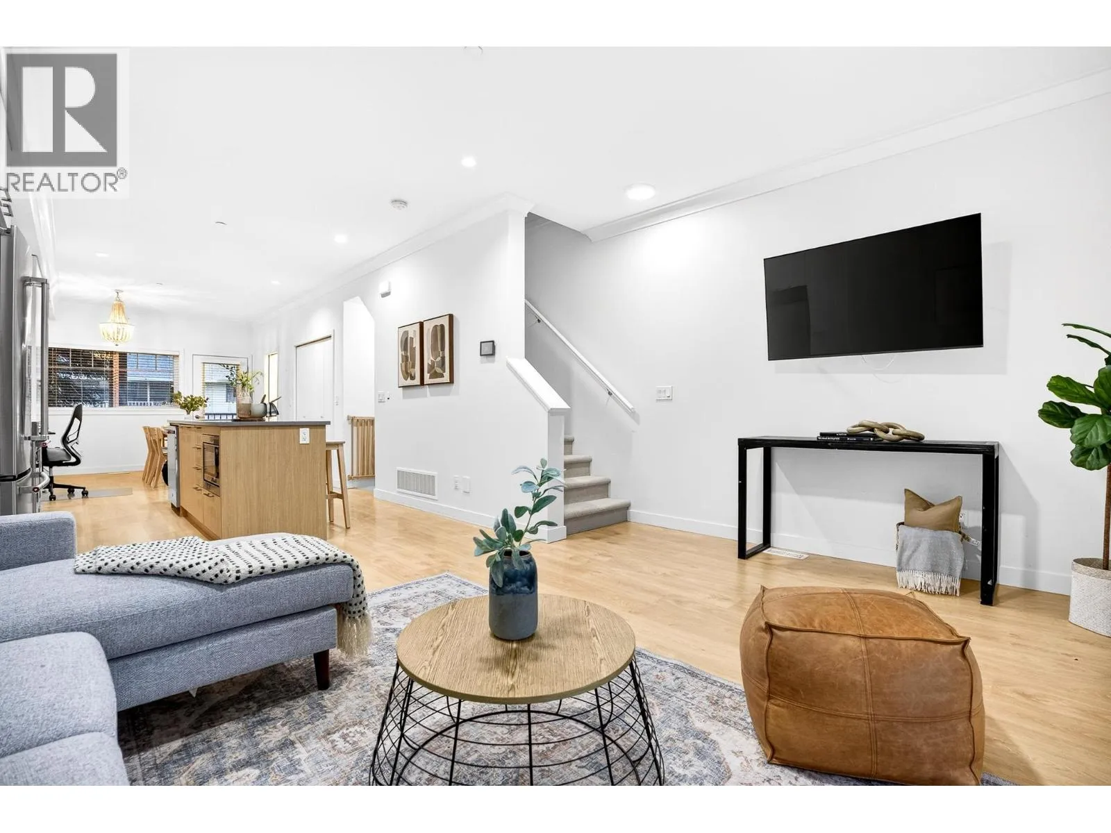This immaculate 3-storey corner townhouse in Ruxton Village is where comfort, style, and location come together effortlessly. Sunlight fills the open-concept main floor with 9′ ceilings, crown moulding, and oak wide-plank laminate flooring, while air conditioning keeps the home comfortable year-round. The kitchen feat. quartz counters, soft-close cabinetry, upgraded Kitchen Aid S/S appliances, & a 5-burner gas stove, flowing seamlessly