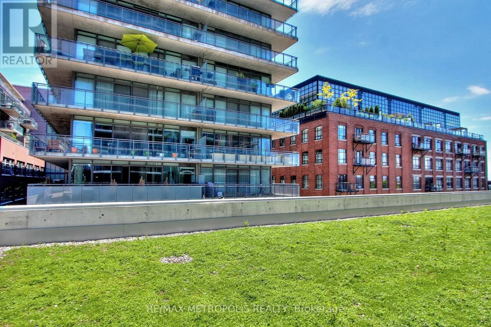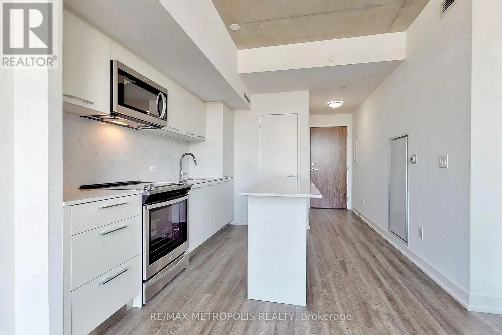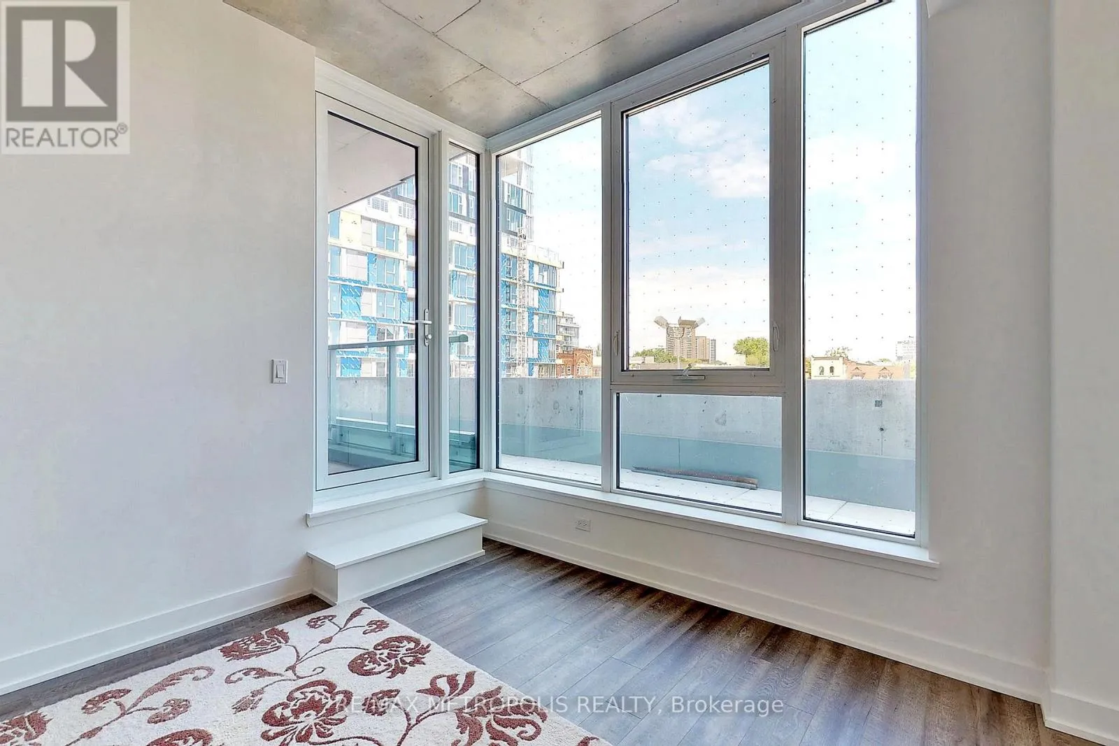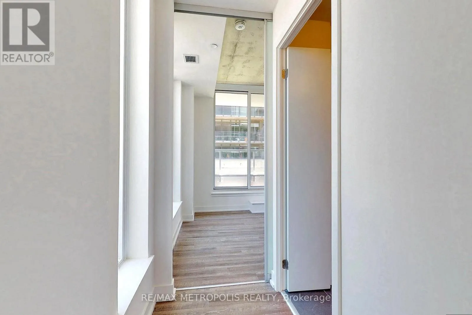 Live Above It All in Riverside Square! This rare 2-bedroom, 2-bathroom corner suite offers 2 private balconies and comes with a parking space and locker-a coveted combination in the heart of the city. Located near Queen & Broadview, this 778 sqft unit features a smart split-bedroom layout, high concrete ceilings, and wide-plank flooring throughout. The sleek, open-concept kitchen includes quartz