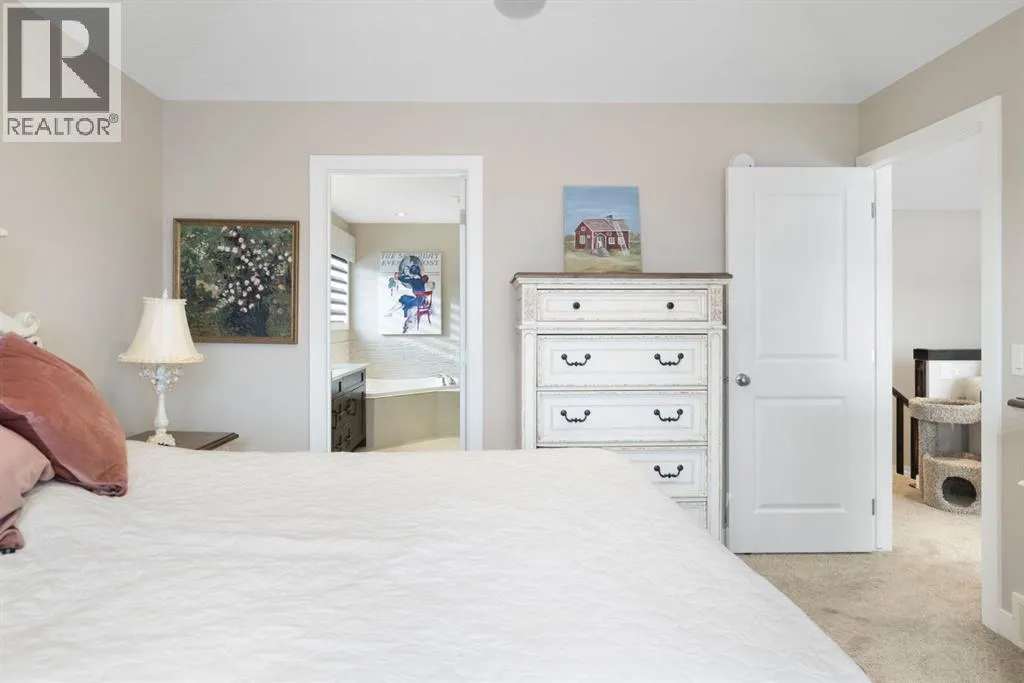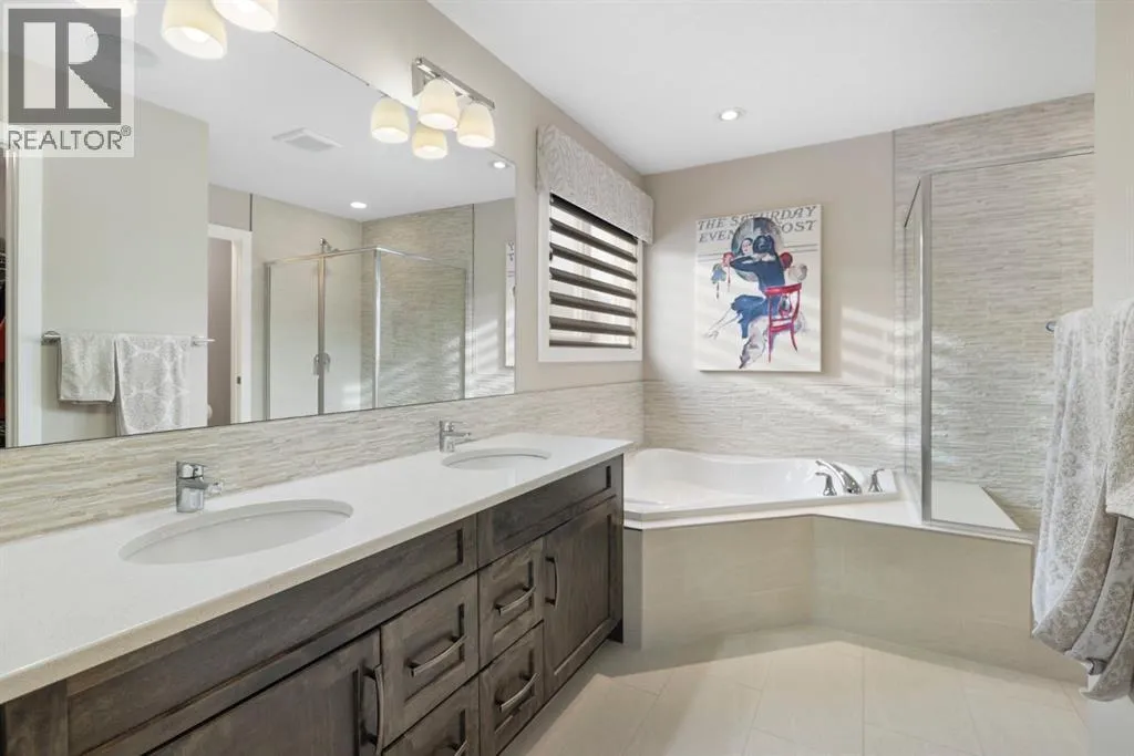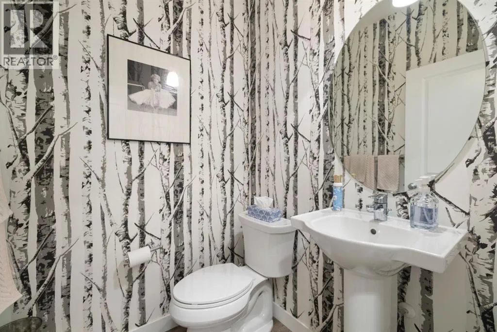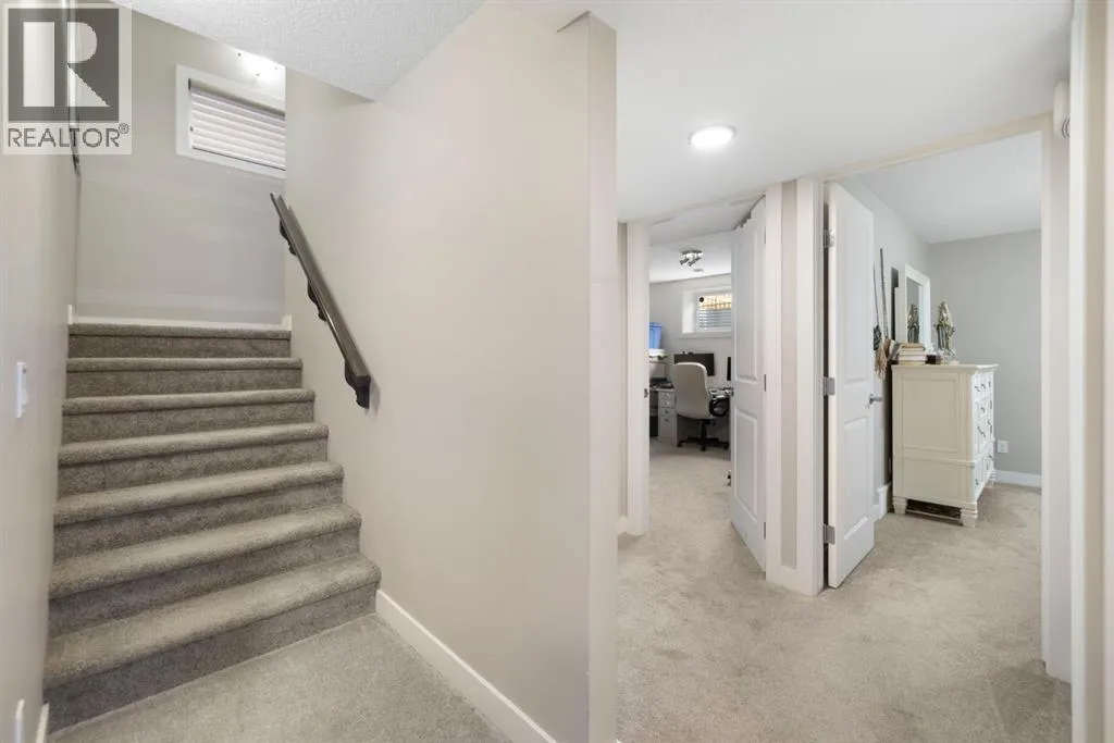 Welcome to 8 Emberside Glen! This beautifully finished two-storey FORMER SHOW HOME offers style, functionality, and an unbeatable family-friendly location backing directly onto the Holy Spirit Catholic School grounds. Stepping inside you are greeted by a spacious front entry and striking open-riser staircase that anchors the main level. The open-concept layout features durable hardwood flooring and a warm, inviting