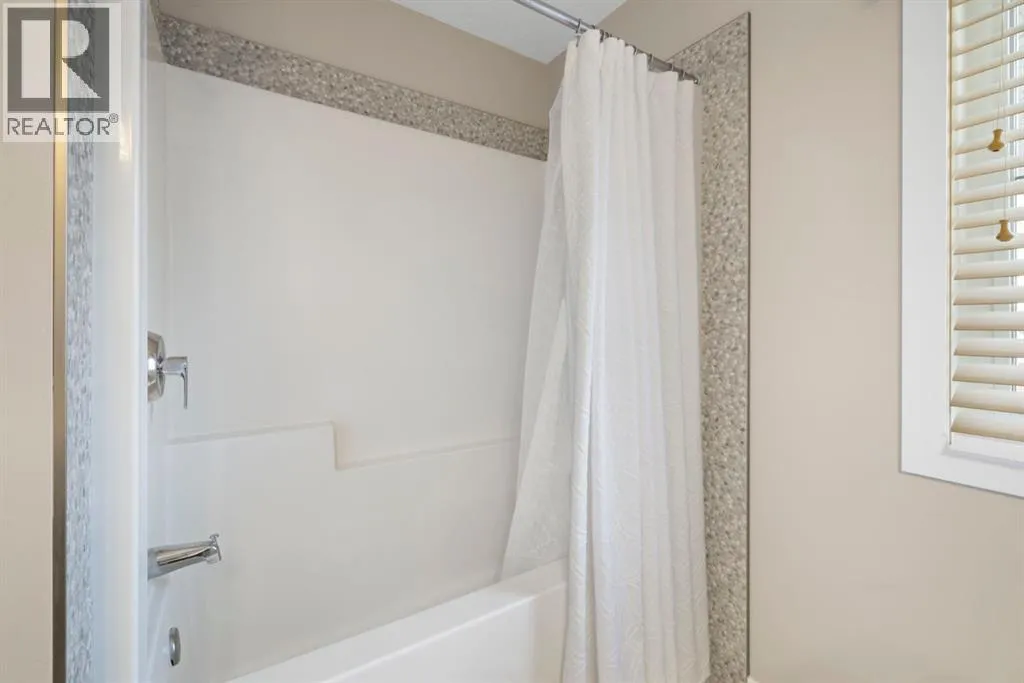 Welcome to 8 Emberside Glen! This beautifully finished two-storey former show home offers style, functionality, and an unbeatable family-friendly location backing directly onto the Holy Spirit Catholic School grounds.Stepping inside you are greeted by a spacious front entry and striking open-riser staircase that anchors the main level. The open-concept layout features durable hardwood flooring and a warm, inviting living room