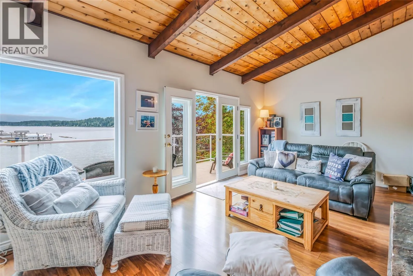 Discover your lakeside sanctuary with this stunning Sproat Lake waterfront home on .41 acre. The open-concept design features vaulted wooden ceilings and exposed beams, creating a warm and inviting atmosphere. Skylights bathe the space in natural light including the kitchen with butcher block countertops and breakfast bar. Cozy up by the fireplace in the living room while enjoying breathtaking views