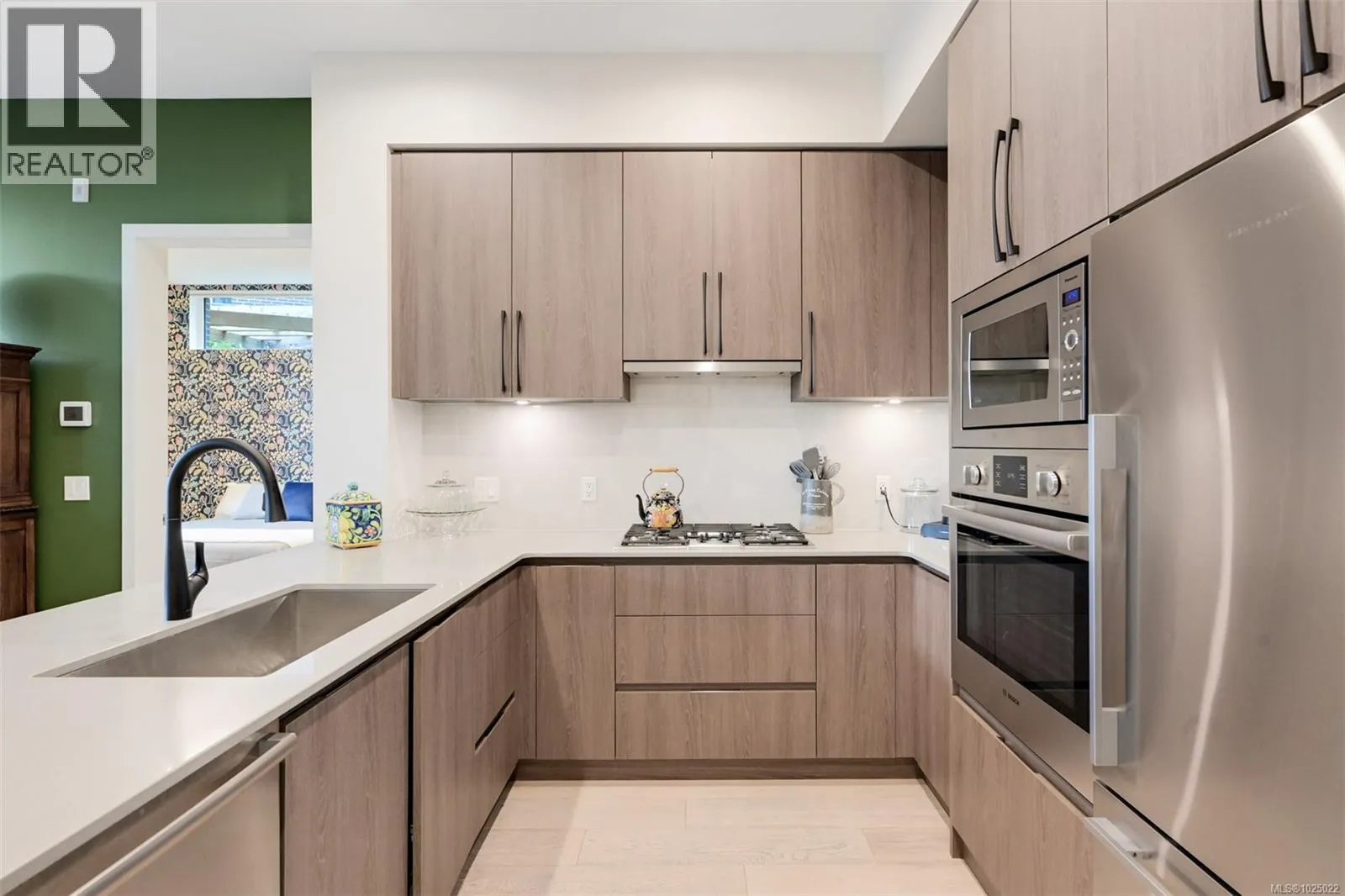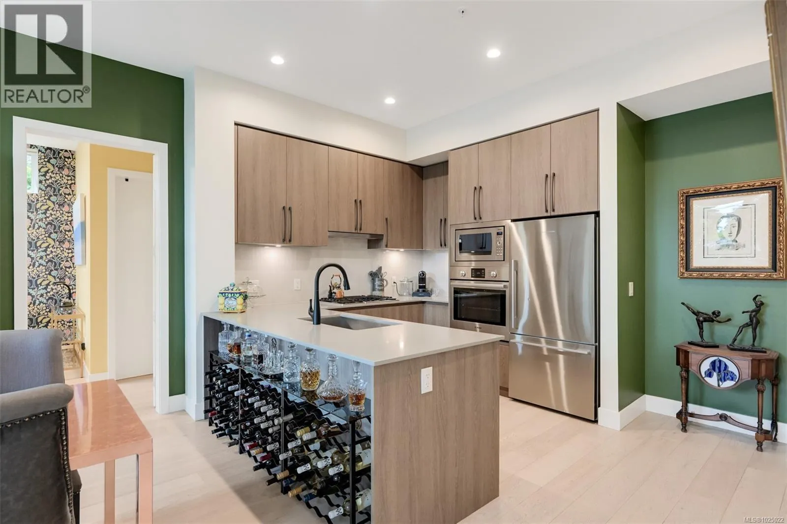 This spacious walk-up luxury condo lives more like a single-level townhome, offering the perfect blend of privacy, comfort, and convenience. Located in Esquimalt Town Square, the quality of craftsmanship, thoughtful design, and materials are evident throughout the home and neighbourhood. This bright, south-facing 2 bed, 2 bath corner home features 9’9” ceilings and expansive picture windows. Enjoy seamless indoor-outdoor living