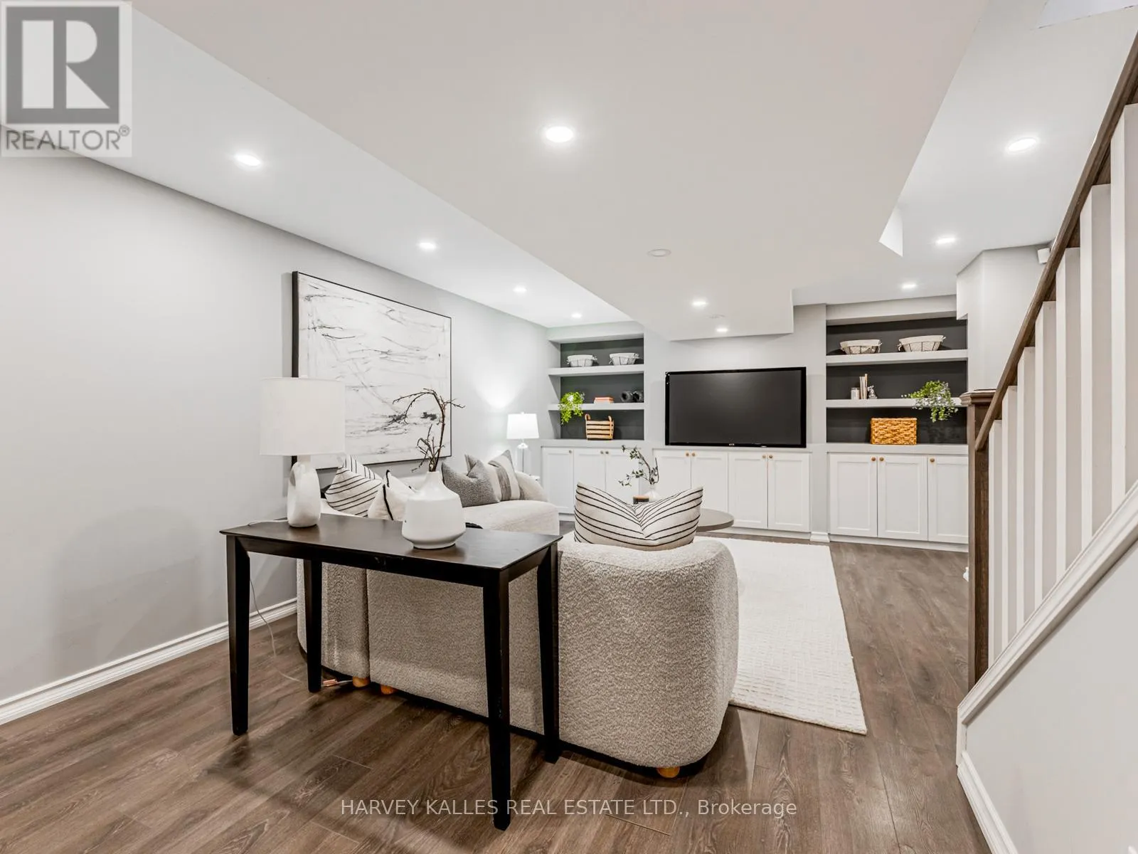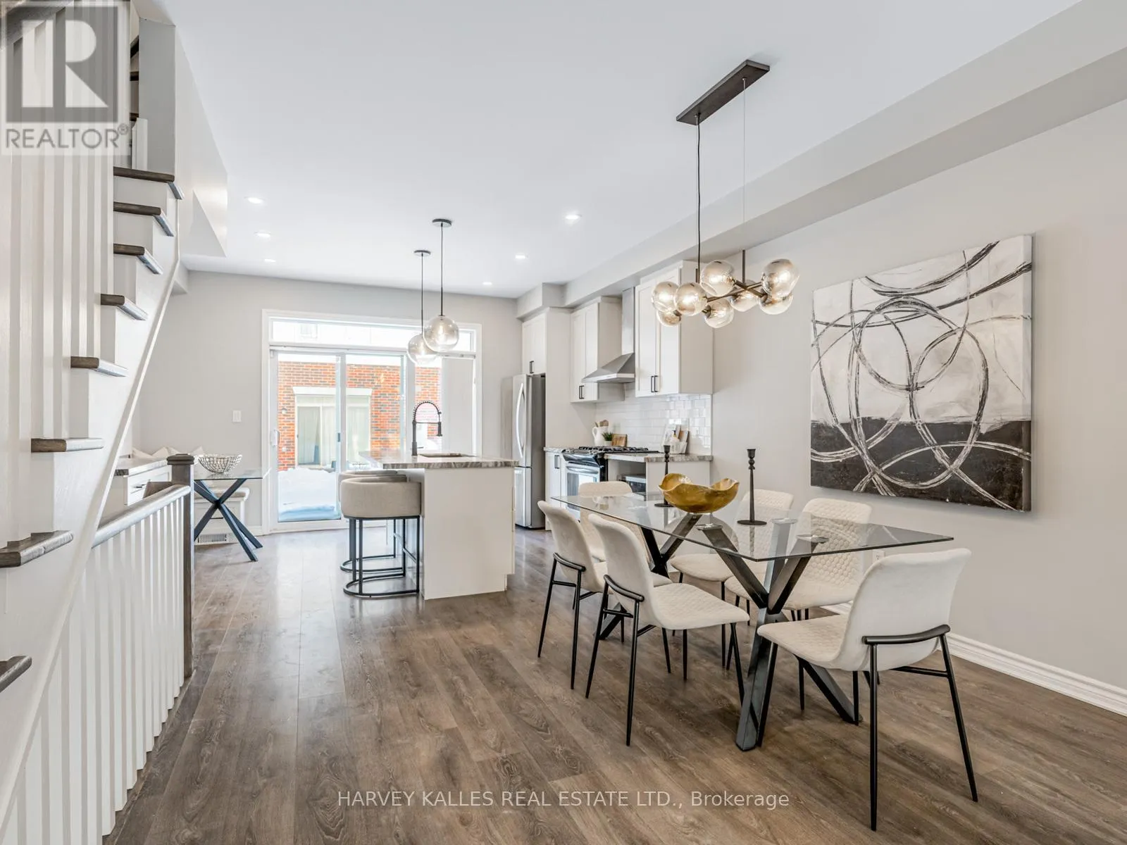 Welcome to executive-style living in this beautifully designed, south-facing Menkes-built townhouse at Humber Mews. Offering over a total of 2,500 sq. ft. of thoughtfully planned living space, this is one of the largest units in the community. The open-concept main level features soaring 9-foot ceilings, pot lights, and elegant hardwood flooring, immediately creating a bright and designer infused ambiance throughout.