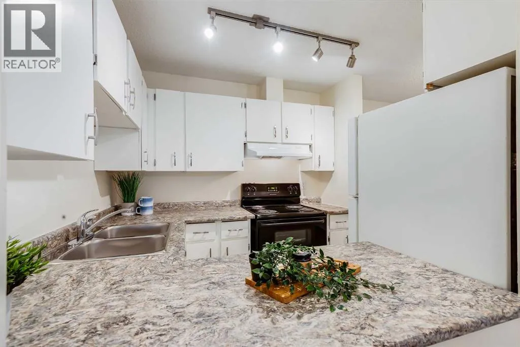 Located in the established community of Glamorgan, this top-floor one bedroom, one bathroom apartment style condo offers just over 700 square feet of well-planned living space. The U-shaped kitchen provides efficient workflow and storage, opening to a dedicated dining area that connects seamlessly with the living room. A wood-burning fireplace adds warmth and character, while sliding doors lead to the