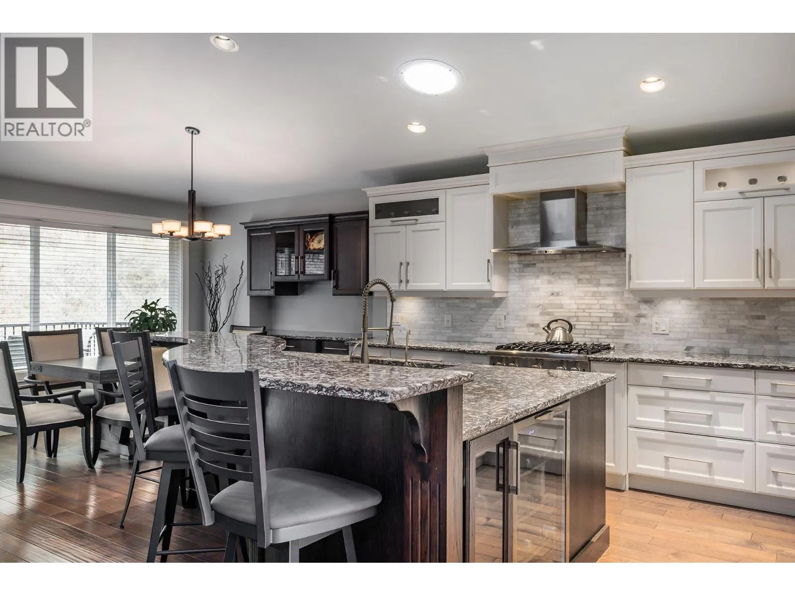 Experience luxury and versatility in this exceptional 4-bedroom, 3-bathroom home with a fully contained 2-bedroom suite, perfectly situated on a quiet cul-de-sac. Designed for modern living and entertaining, the upper level features a bright, open-concept kitchen, dining, and living area with vaulted ceilings, massive windows, and a stunning floor-to-ceiling gas fireplace, while extra-large sliding doors open to a covered deck