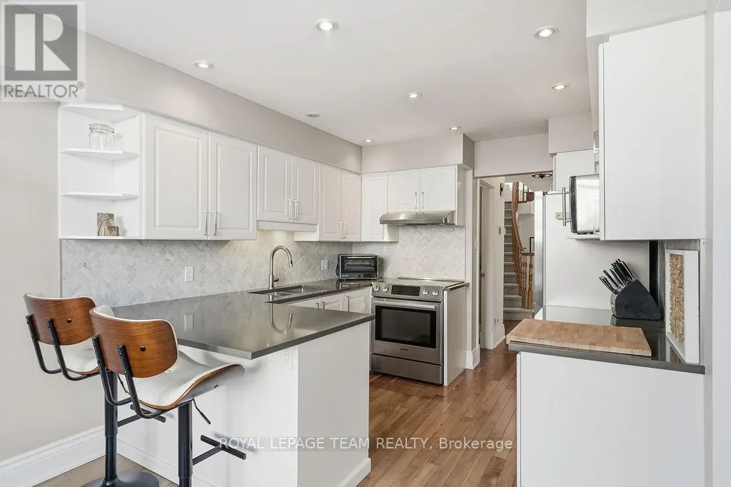 Imagine weekend mornings spent enjoying coffee on your private interlock patio, followed by a leisurely stroll to nearby parks, bike paths, or local shops. This meticulously maintained 3-bedroom, 2.5-bath townhouse in Carson Grove combines effortless style with everyday convenience. Enter the open-concept living and dining area, where rich hardwood floors and elegant crown mouldings create a welcoming backdrop for entertaining