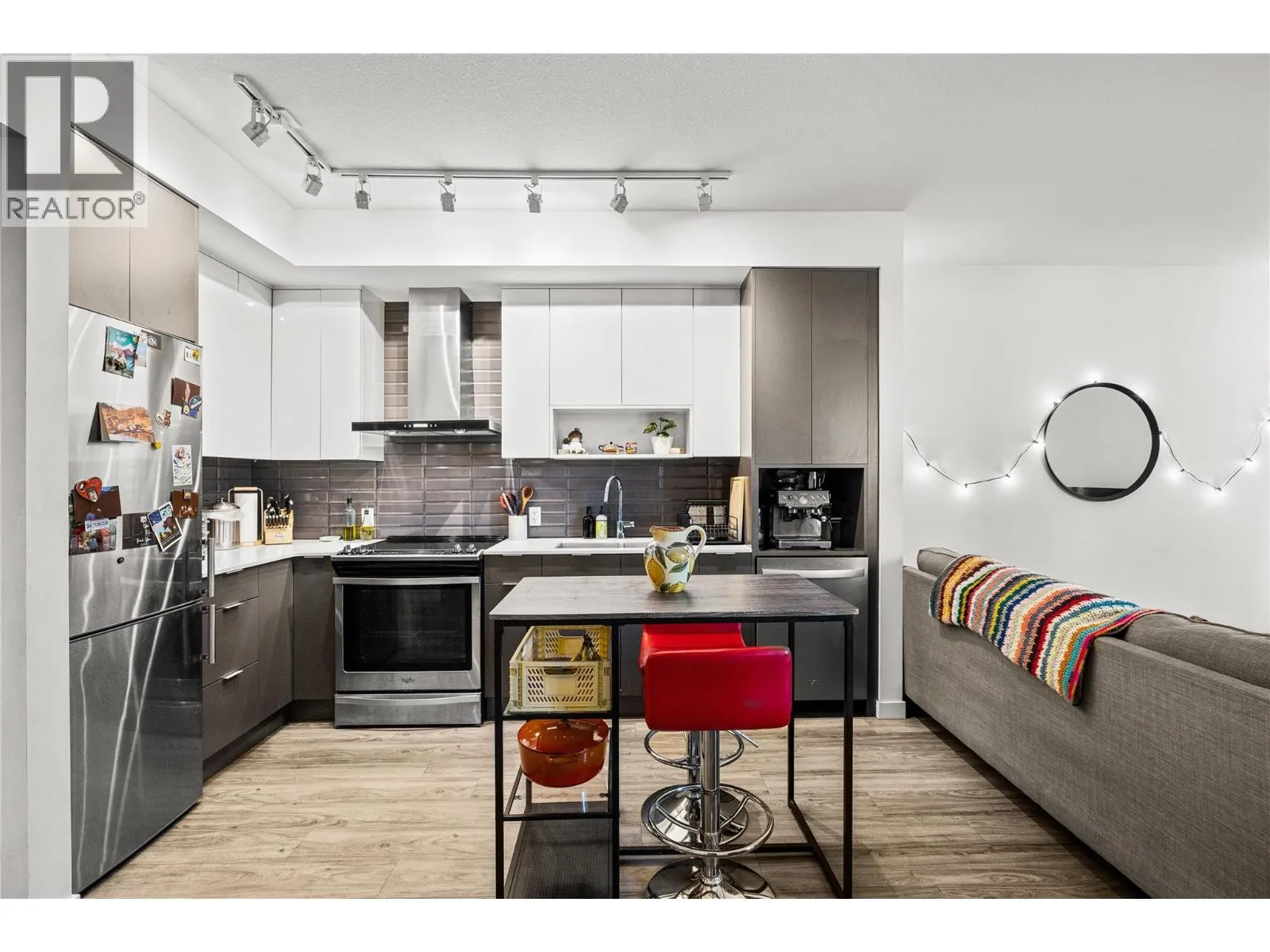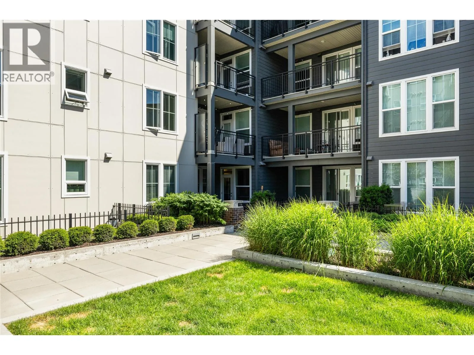Bright & modern 1 bed condo with large, ground level patio at Central Green! Welcome to your peaceful urban retreat in the heart of Kelowna. This stylish one bedroom, one bathroom condo is tucked away on the quiet courtyard side of the sought-after, LEED-certified Central Green 2 development, a pet-friendly community directly beside Rowcliffe Park. Rarely offered, this unit features