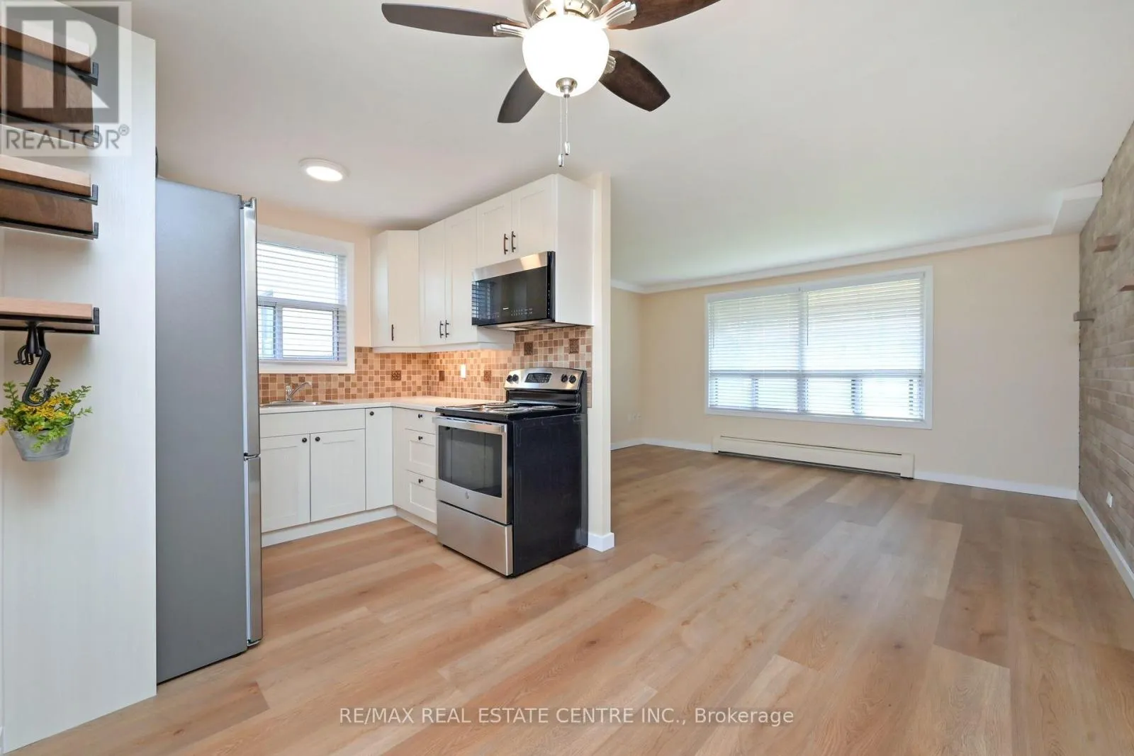 Gorgeous main level condo apartment in convenient location to all amenities Orangeville has to offer. Trails, Shopping, Dining, Theatre, library, parks and more. Renovated throughout with unique brick wall feature. Fridge, Stove and Microwave (all brand new) included. Amazingly spacious with quick and easy access to front street level. Laundry facilities in building (#63).