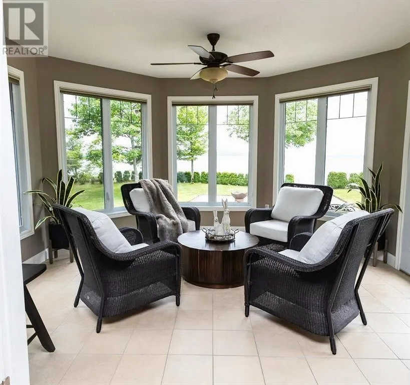 108’ of Private Sand Beach Custom Waterfront Oasis !! Meticulously maintained by the original owner, this custom four-bedroom home is positioned on a one-acre lot boasting 108 feet of pristine, private sand beach. The interior features a luxurious kitchen with granite countertops and a large center island. A split floor plan ensures privacy, highlighted by an opulent primary suite with