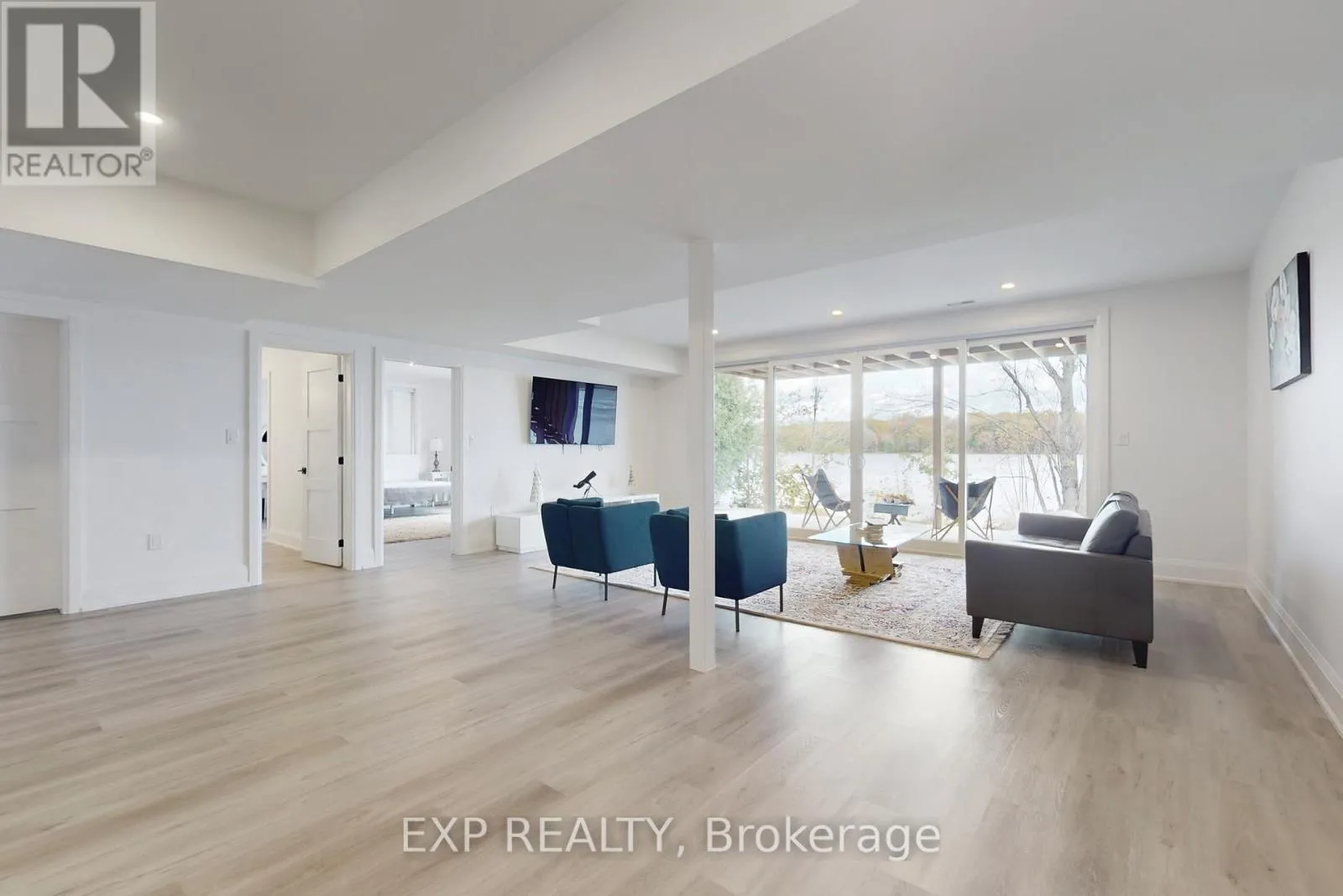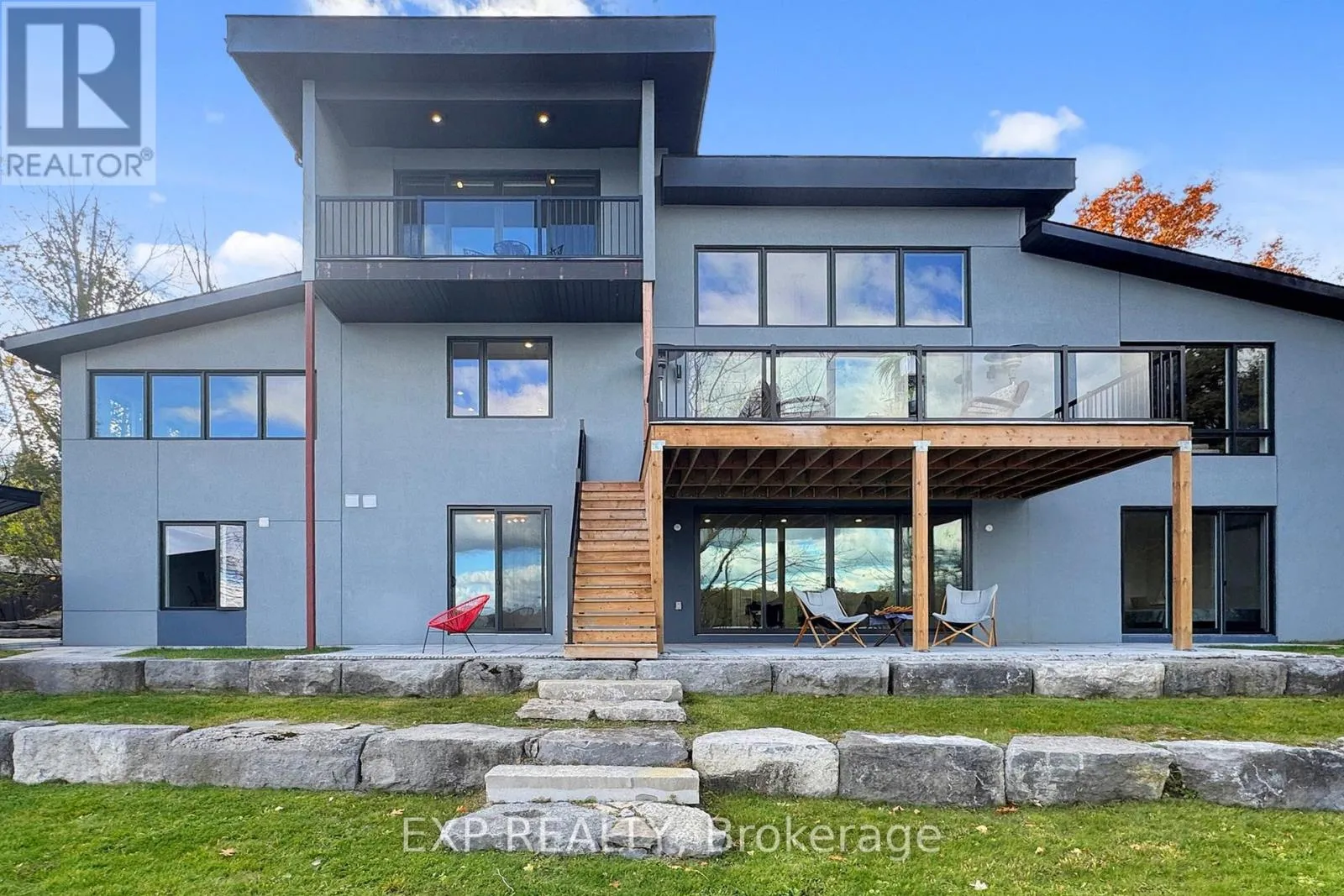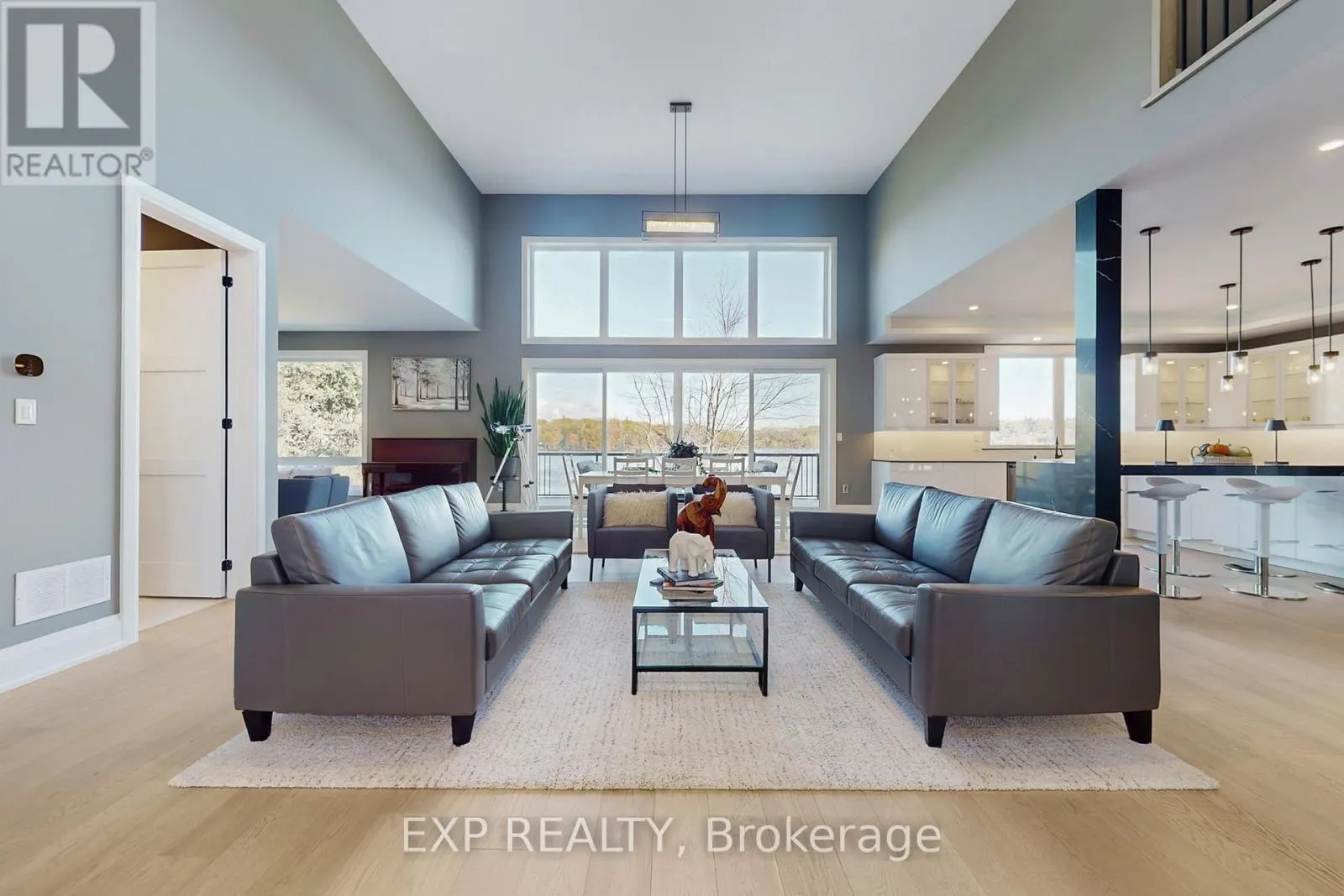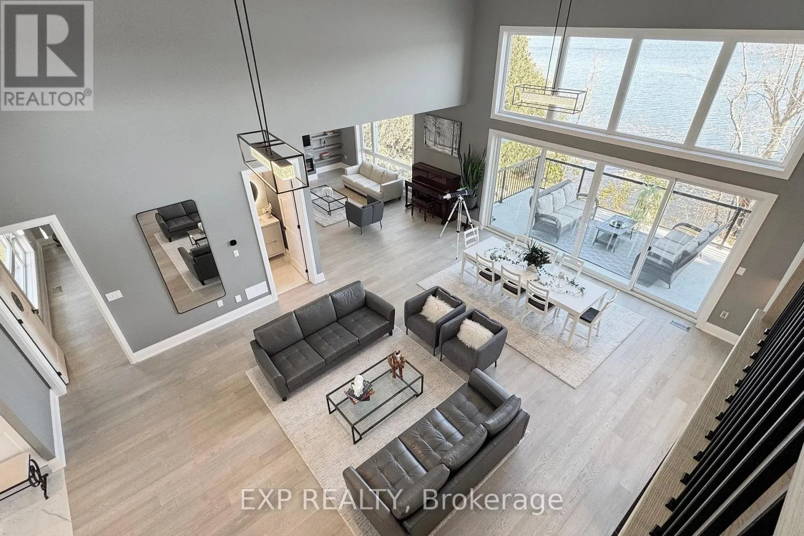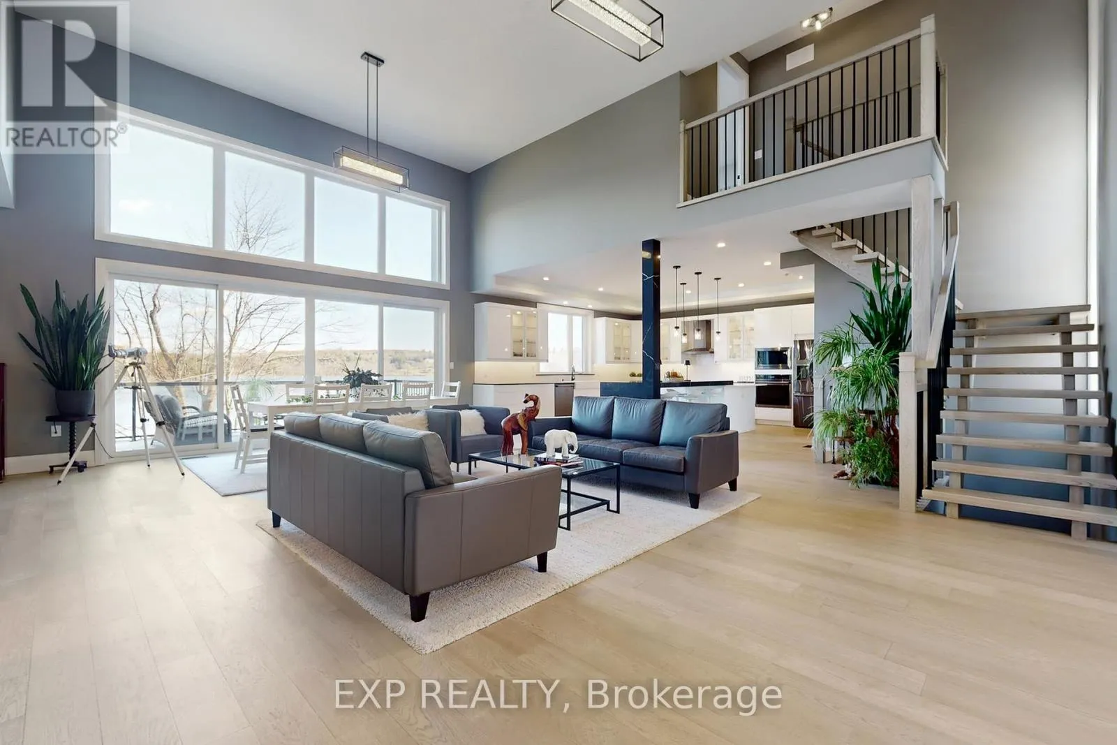 Stunning custom-built lakefront home with 175 ft of private shoreline surrounded by mature trees. The master bedroom loft with a walkout to a balcony with breathtaking lake views and a luxurious ensuite. The main floor with 10 to 16 ft ceilings, a spacious open-concept layout, large windows for natural light, and a walkout to a terrace overlooking the lake. The