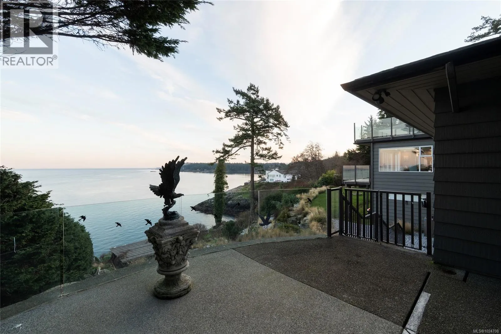 Set on 1.15 acres of private, low-bank oceanfront, this gated Saanich estate offers an extraordinary combination of scale, privacy, and immersive coastal living. A secure entrance welcomes you with manicured landscaping and a cascading waterfall, creating a serene arrival and tranquil soundscape throughout the home. Inside, the residence is filled with natural light, featuring floor-to-ceiling windows that frame sweeping ocean