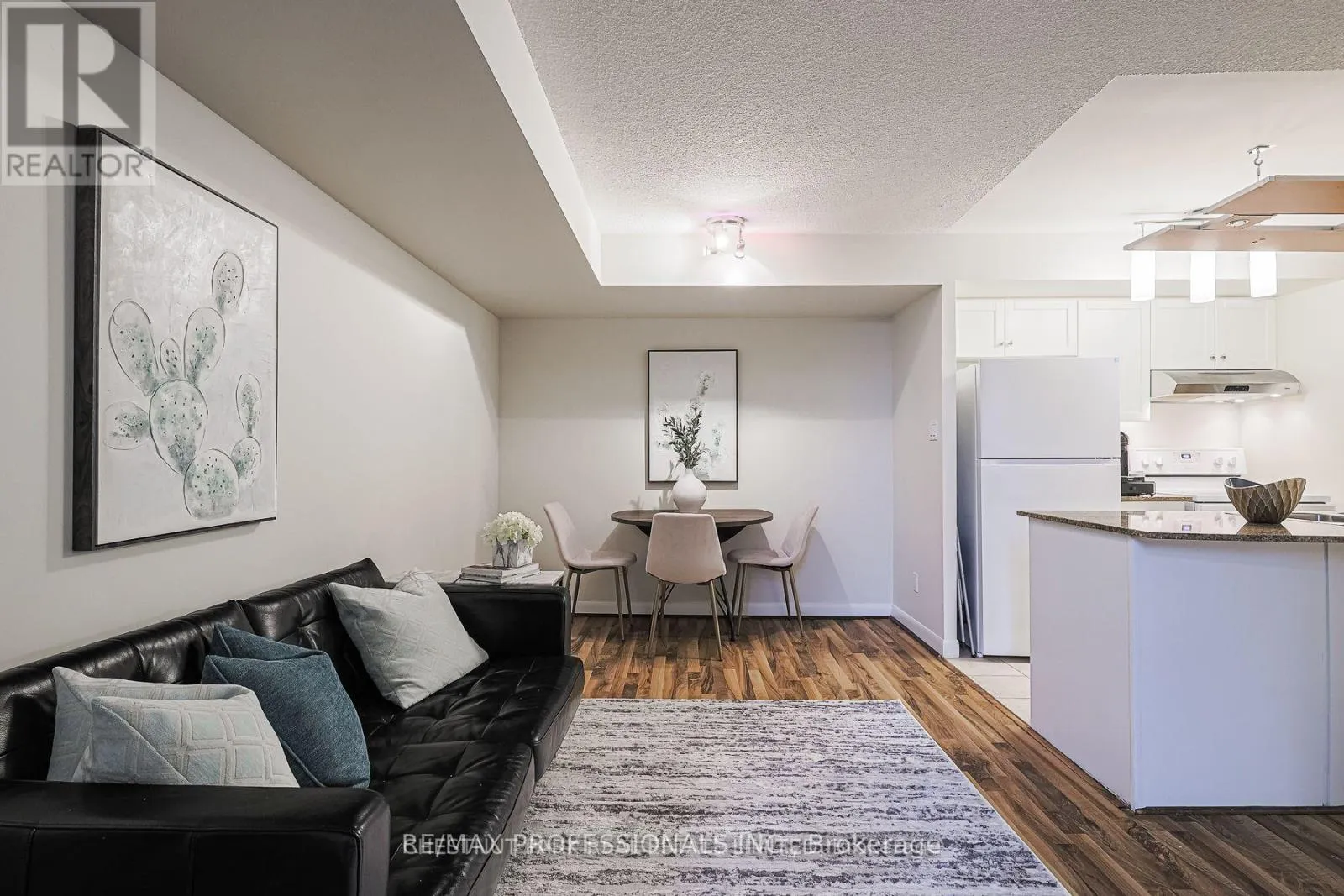 This stylish and thoughtfully designed 605+ sq ft 1-bedroom + den, 1-bath condo at The Richmond offers the perfect blend of comfort and convenience. The bright, open-concept living and dining area is ideal for entertaining, featuring modern laminate floors throughout. The kitchen is equipped with granite countertops and a functional centre island. The spacious primary bedroom includes a walk-in closet,