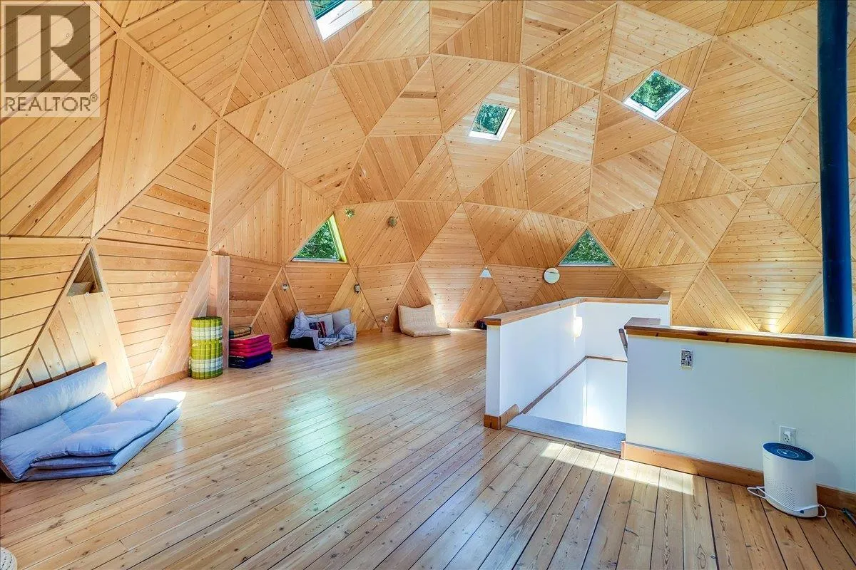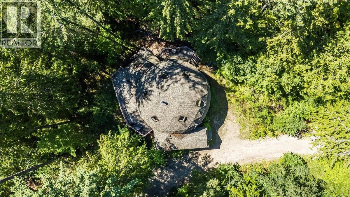 Welcome to your private retreat! Nestled on a 22-acre forested sanctuary just 20 minutes from Nelson, this gorgeous geodesic dome home offers endless possibilities. Built on an ICF – Insulated Concrete Form foundation, it’s designed for efficiency, comfort, and longevity. The main floor features a bright kitchen, open living area with a wood stove, a spacious primary bedroom, and a