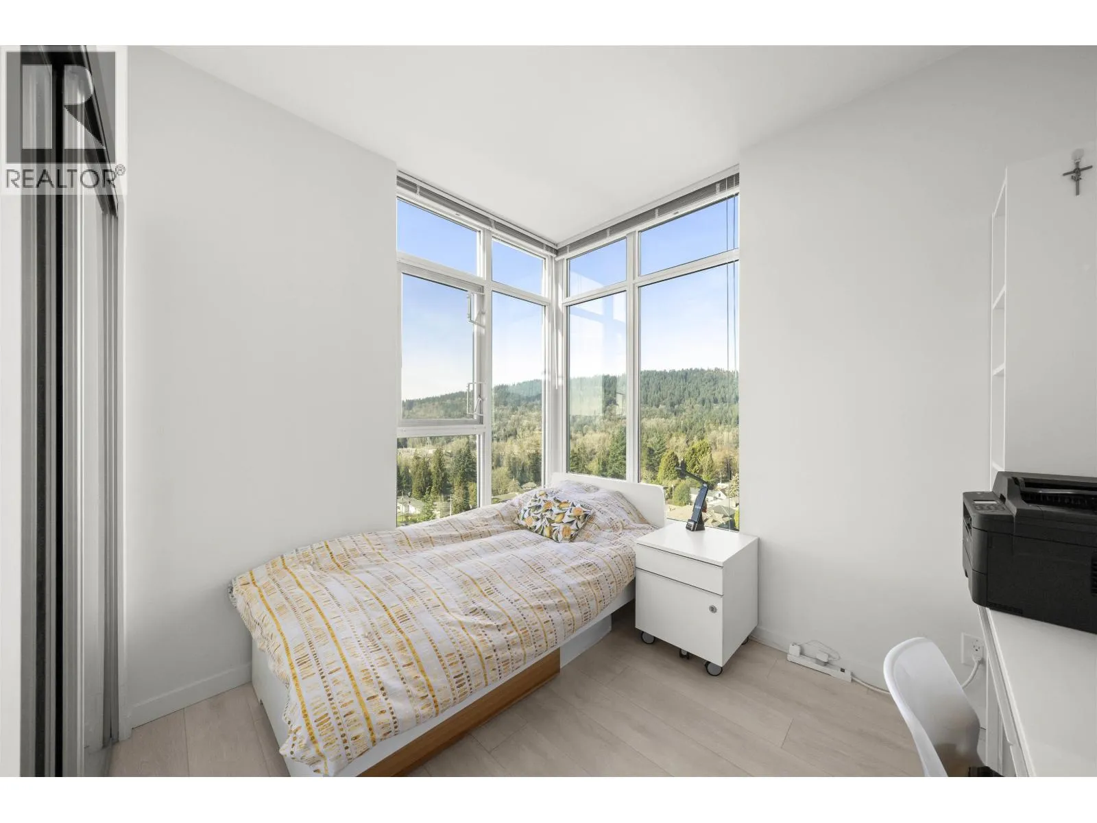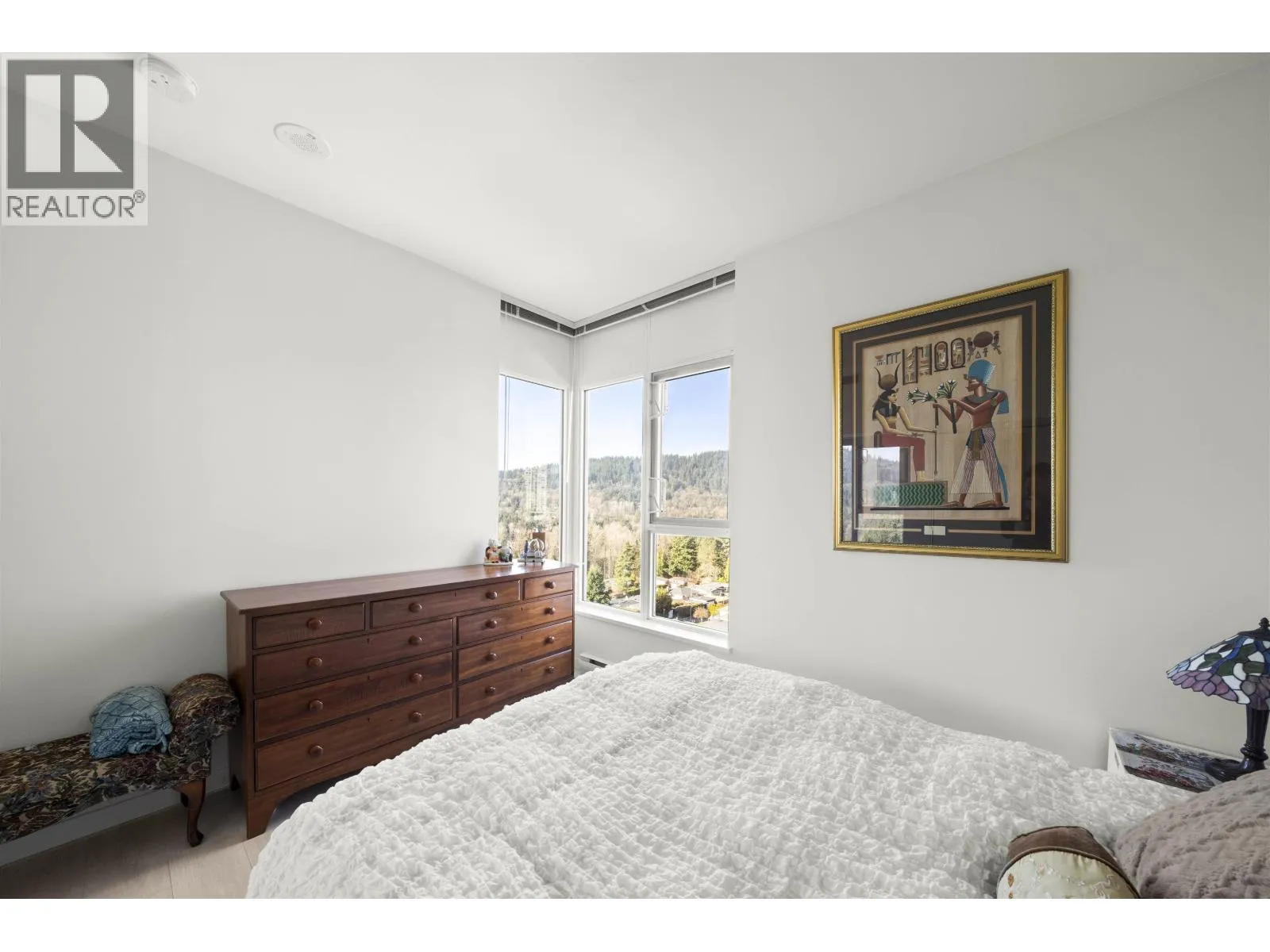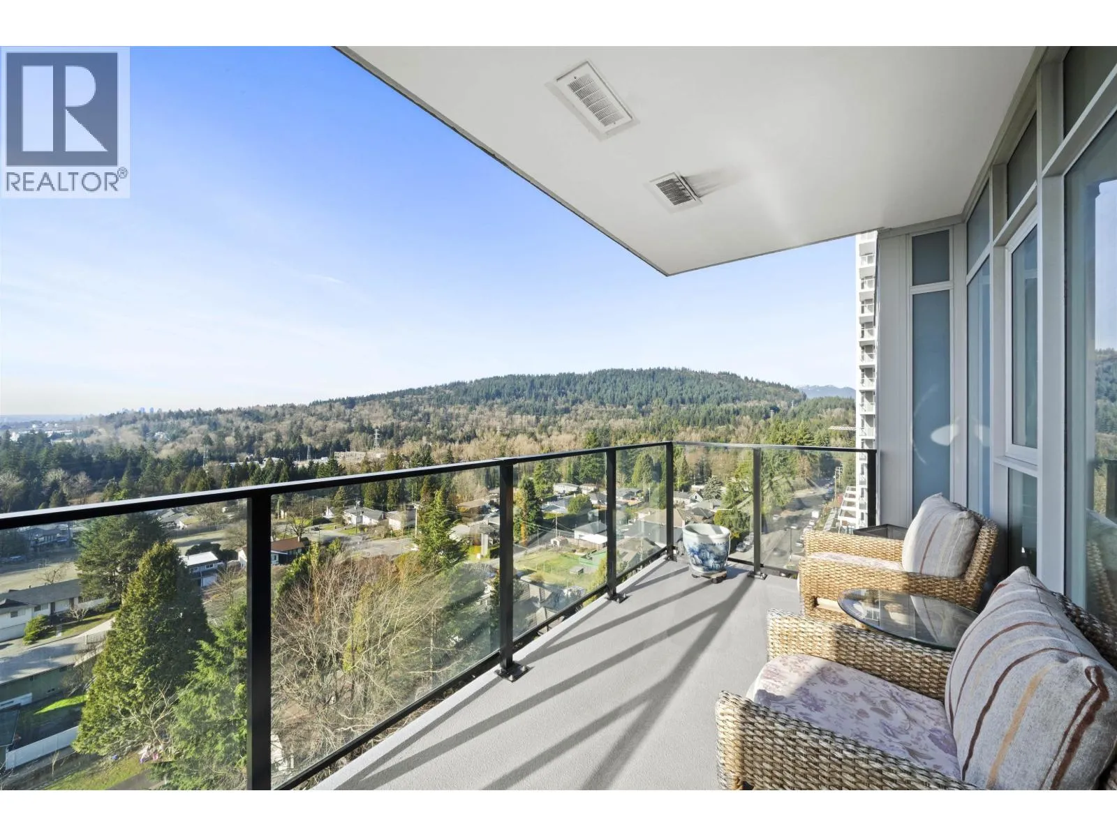 THE SUNSET VIEWS YOU HAVE BEEN WAITING FOR! Welcome to 691 North Road located in the heart of Burquitlam. Designed to capture the UNOBSTRUCTED VIEWS of MOUNTAIN RANGES & ENDLESS GREENERY, this open concept 778 sq ft, 2 Bed, 2 Bath, suite hovers from the 10th floor, & comes with laminate floors throughout, s/s appliances, kitchen island for entertaining, 9′