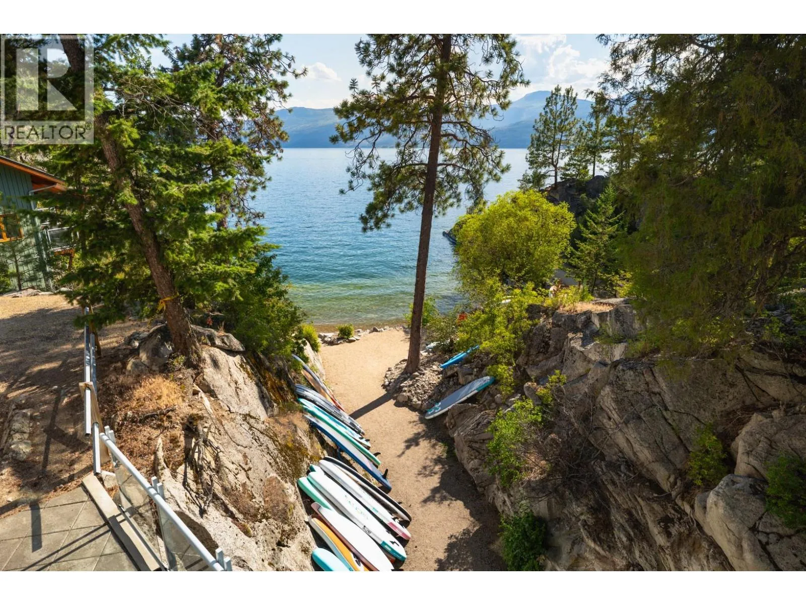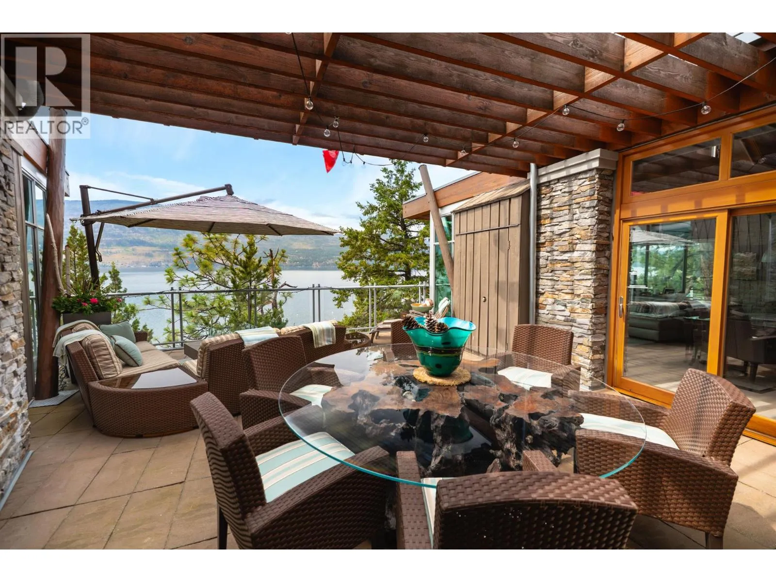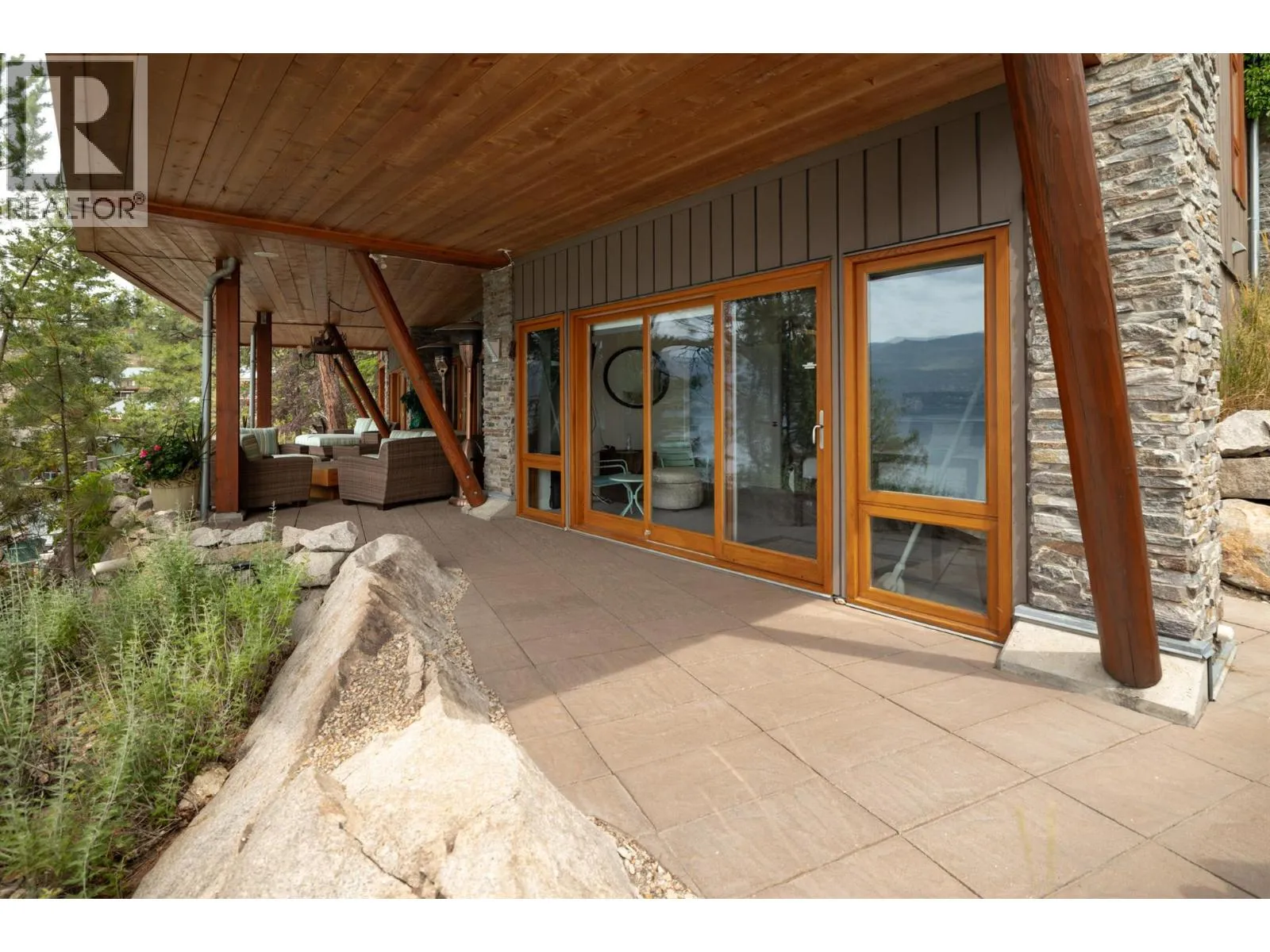 Perched above the shoreline in the exclusive Outback community, this one-of-a-kind cantilevered lakefront home is a West Coast-inspired masterpiece that blends bold architecture with the serenity of nature. Crafted into the rocky knoll, the 5 bedroom, 4 bathroom custom residence offers 3,423 sq.ft. of thoughtfully designed living space and over 1,200 sq.ft. of multilevel outdoor terraces, all with panoramic lake