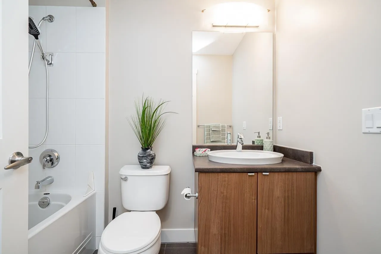 Hurry to view this spotless, quiet, corner apartment at GRUV. Like new condition, both bedrooms are spacious and both have their own bathrooms. Large wrap around covered NW facing balcony overlooking peaceful greenbelt. Stainless steel appliances, granite countertops, new carpets in bedrooms and fresh interior paint throughout. Open plan with breakfast bar, window in kitchen and plenty of natural light.