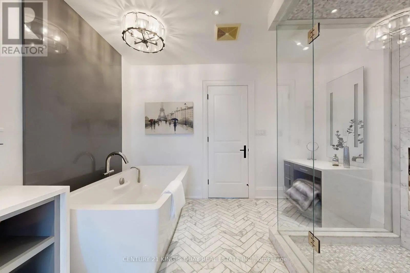 Stunning Custom-Built Home In The Heart Of Markham Village Boasts Over 4000 Sq Ft Of Living Space. High-End Finishes From Top To Bottom, Bright South Facing Home. Real Wood Engineered Oak Flooring Throughout & Heated Tile Floors In Bathrooms & Second Floor Laundry. All Bedrooms With Ensuites. Custom Cabinetry, Closet Organizers, Built-In Thermador Appliances & Designer Light Fixtures. This Home