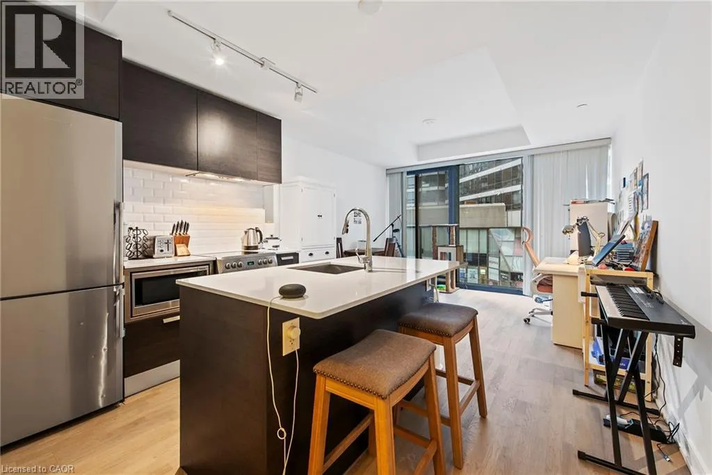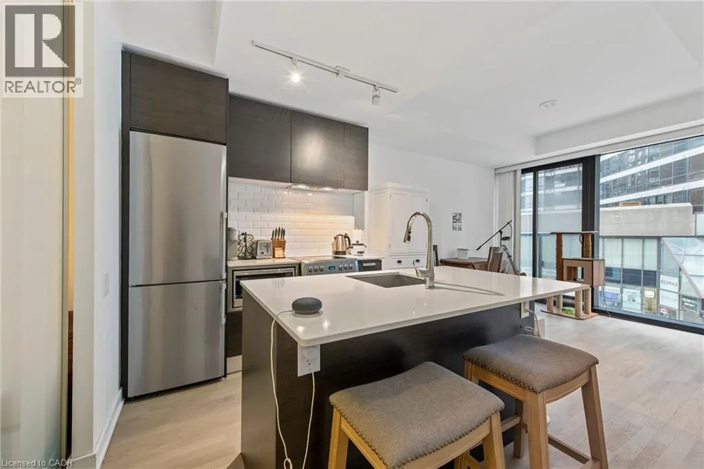 Welcome to the sought-after 1 Thousand Bay Condos, where luxury and convenience meet! This well-appointed 1-bedroom + den unit boasts an open-concept layout with a modern kitchen featuring sleek cabinetry and a functional island. The spacious living and dining area is bathed in natural light, thanks to floor-to-ceiling windows, and opens to a private balcony, perfect for relaxing or entertaining.