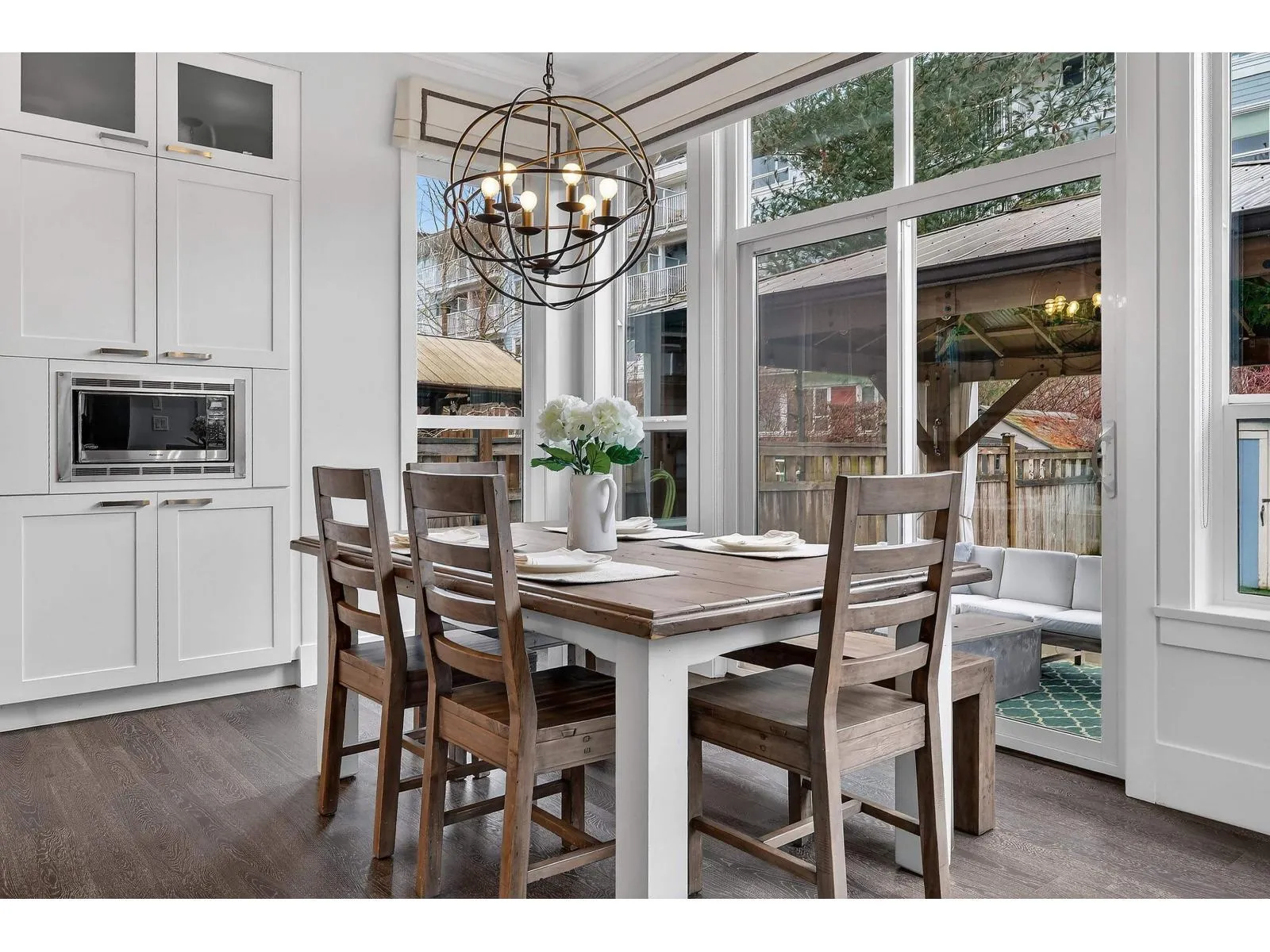 Beautifully designed 4 bed + den, 4 bath former Show Home in Murrayville offering modern elegance and thoughtful upgrades, inc. A/C, designer lighting, custom millwork. Open concept main floor living space w/10ft ceilings, oversized open kitchen w. pot filler and top-of-the-line appliances. Gorgeous landscaped West facing yard w/ pergola. Upstairs, the large primary suite includes 2 w/i closets, vaulted ceilings