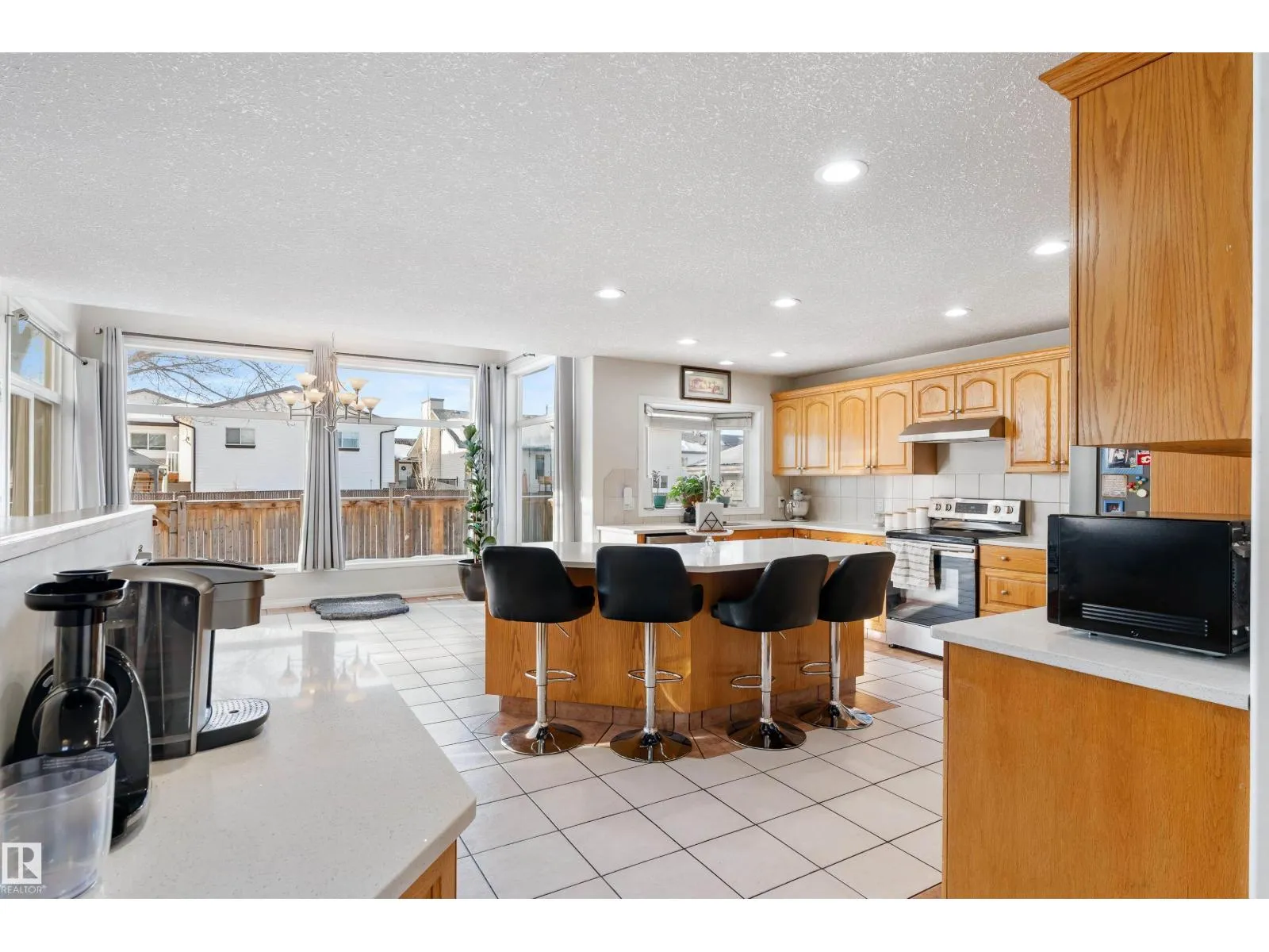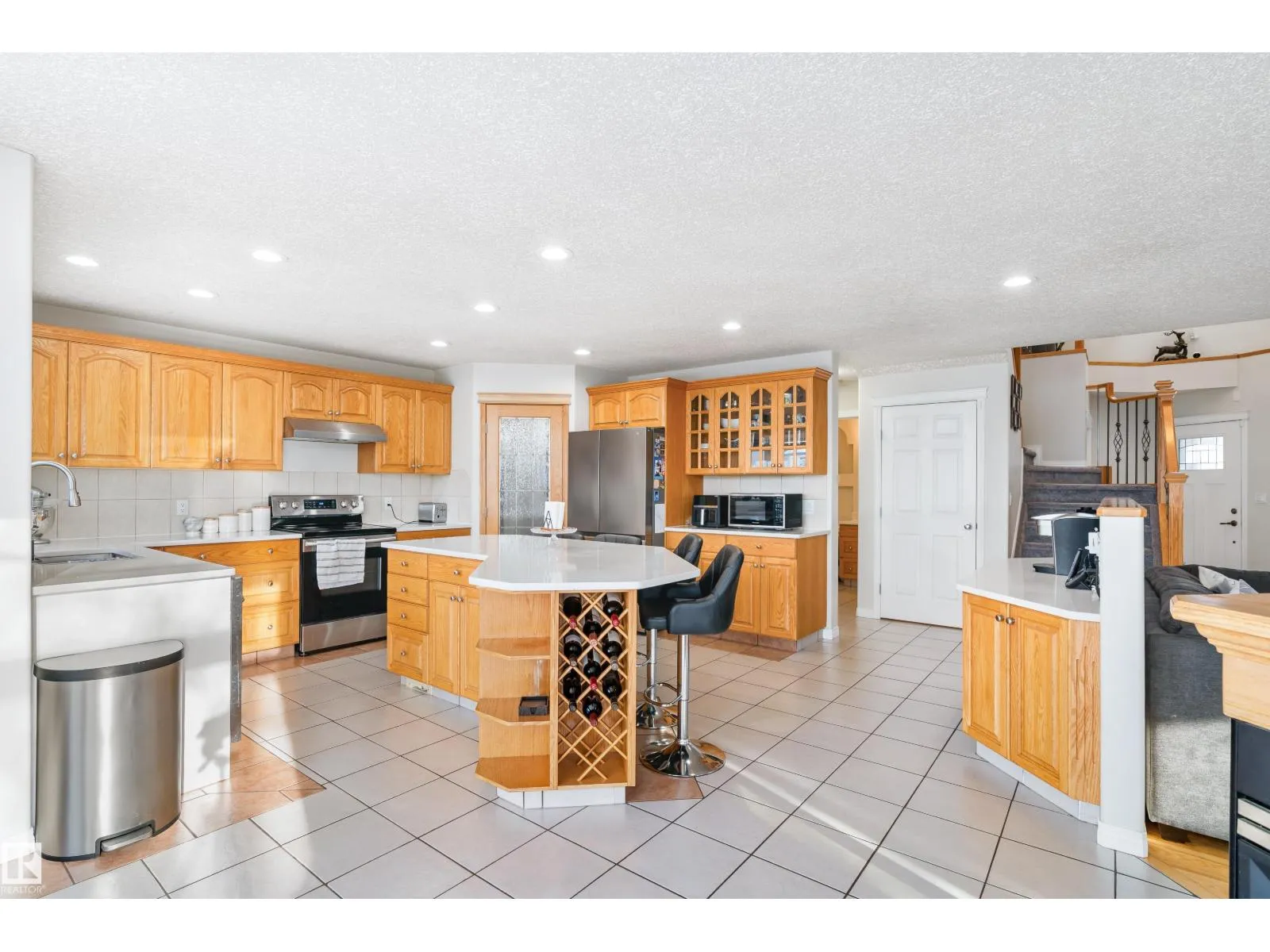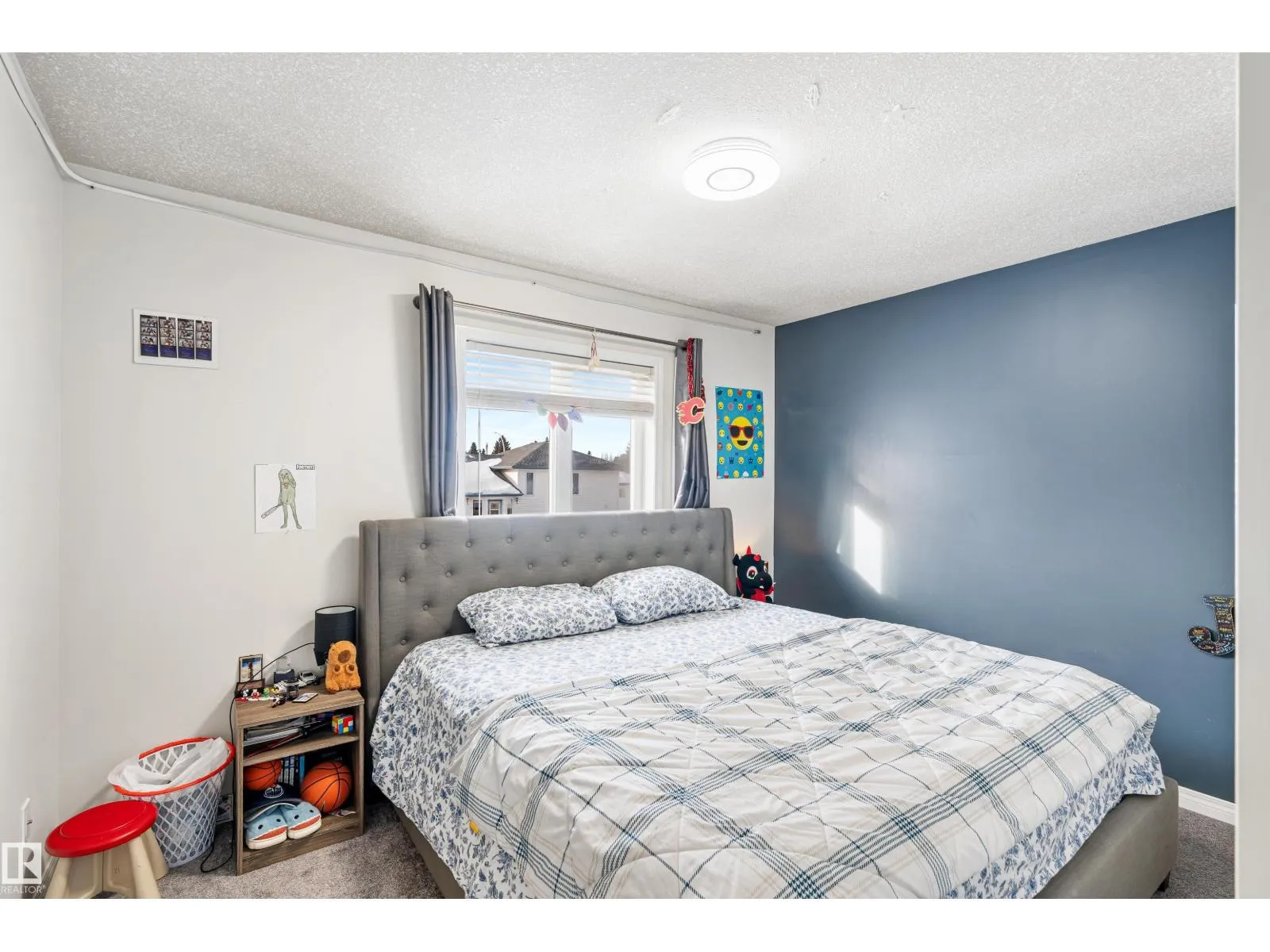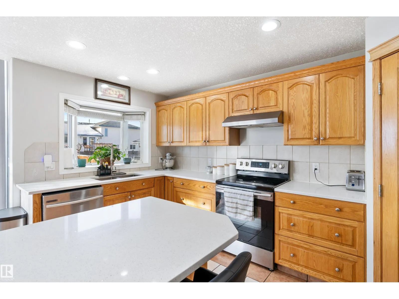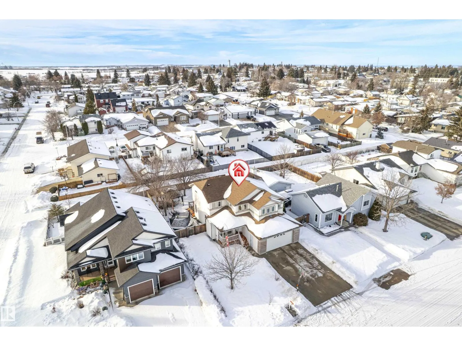 Welcome to this stunning two-storey family home featuring exceptional space and comfort. The main level showcases hardwood floors, a spacious living room with striking navy accent wall, and abundant natural light. The gourmet kitchen boasts rich oak cabinetry, center island with wine storage, stainless steel appliances, and breakfast nook overlooking the backyard. Enjoy the cozy double-sided fireplace connecting the kitchen