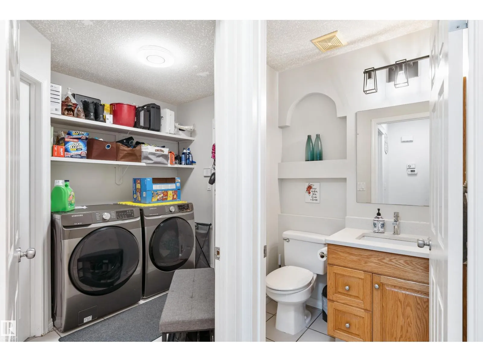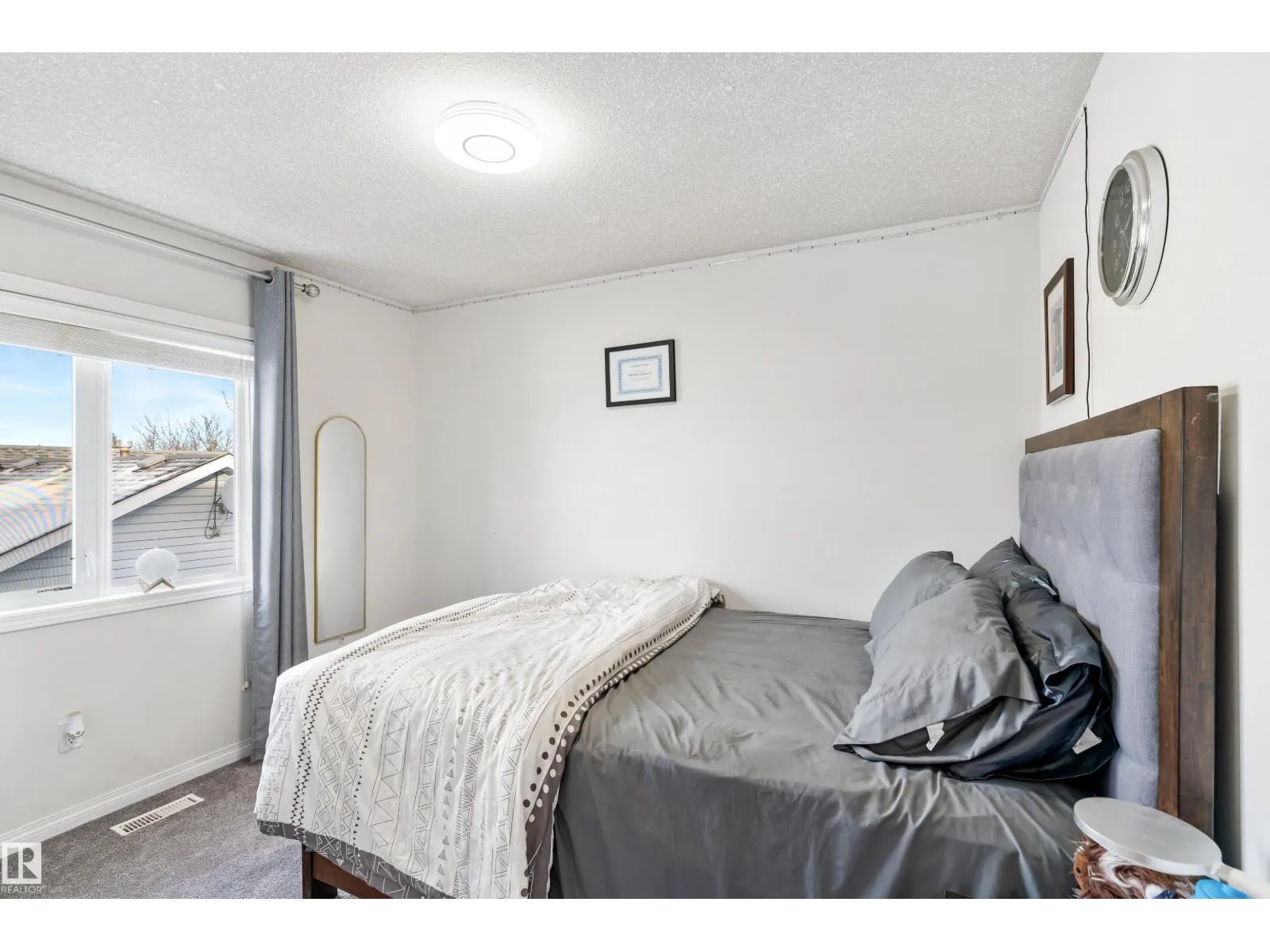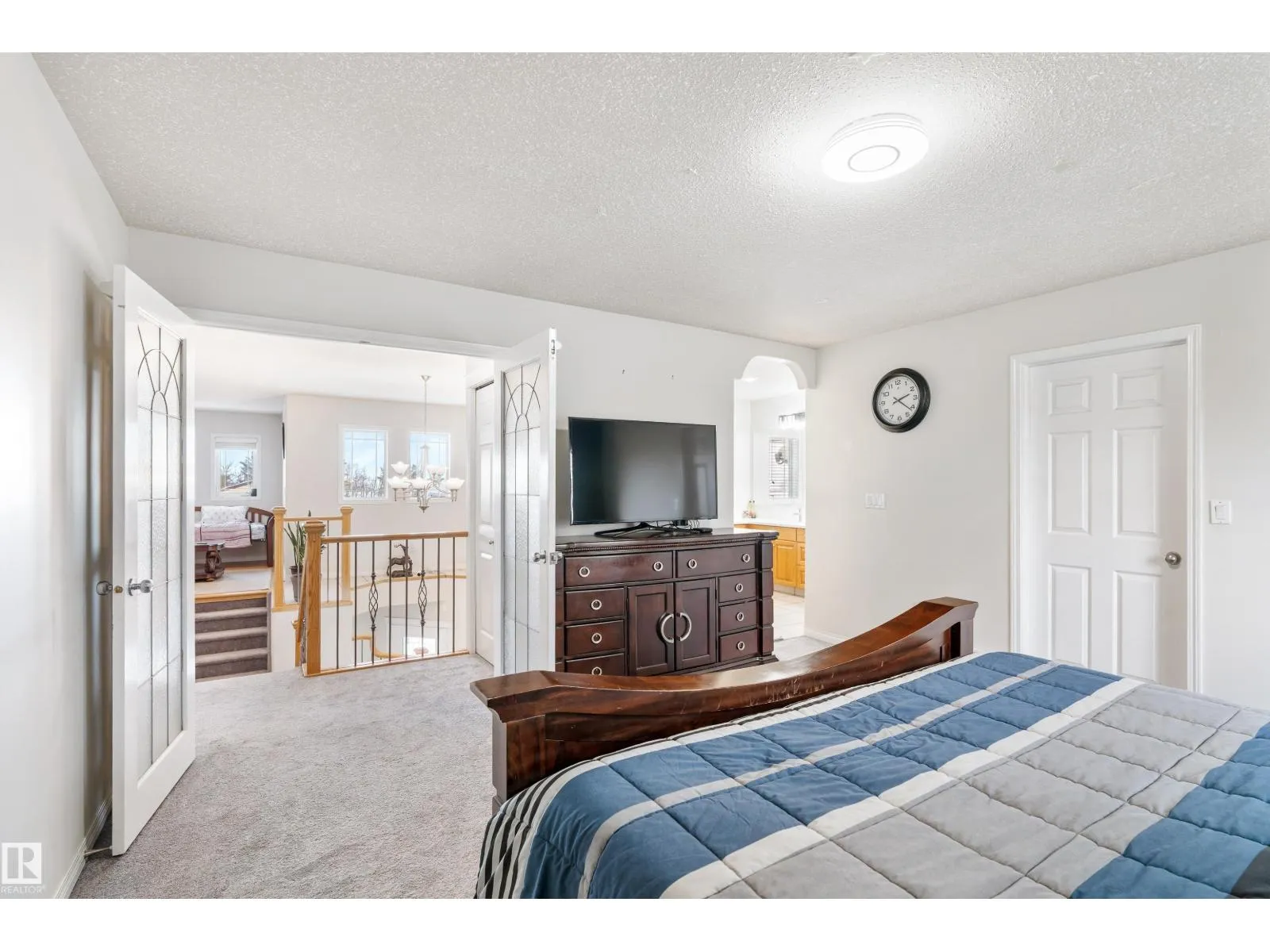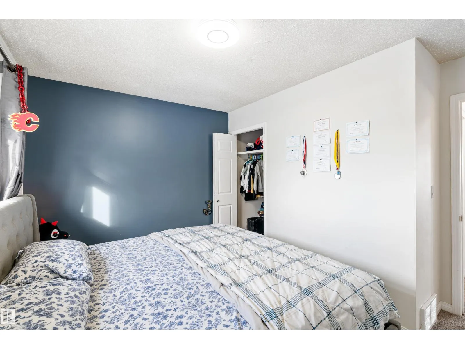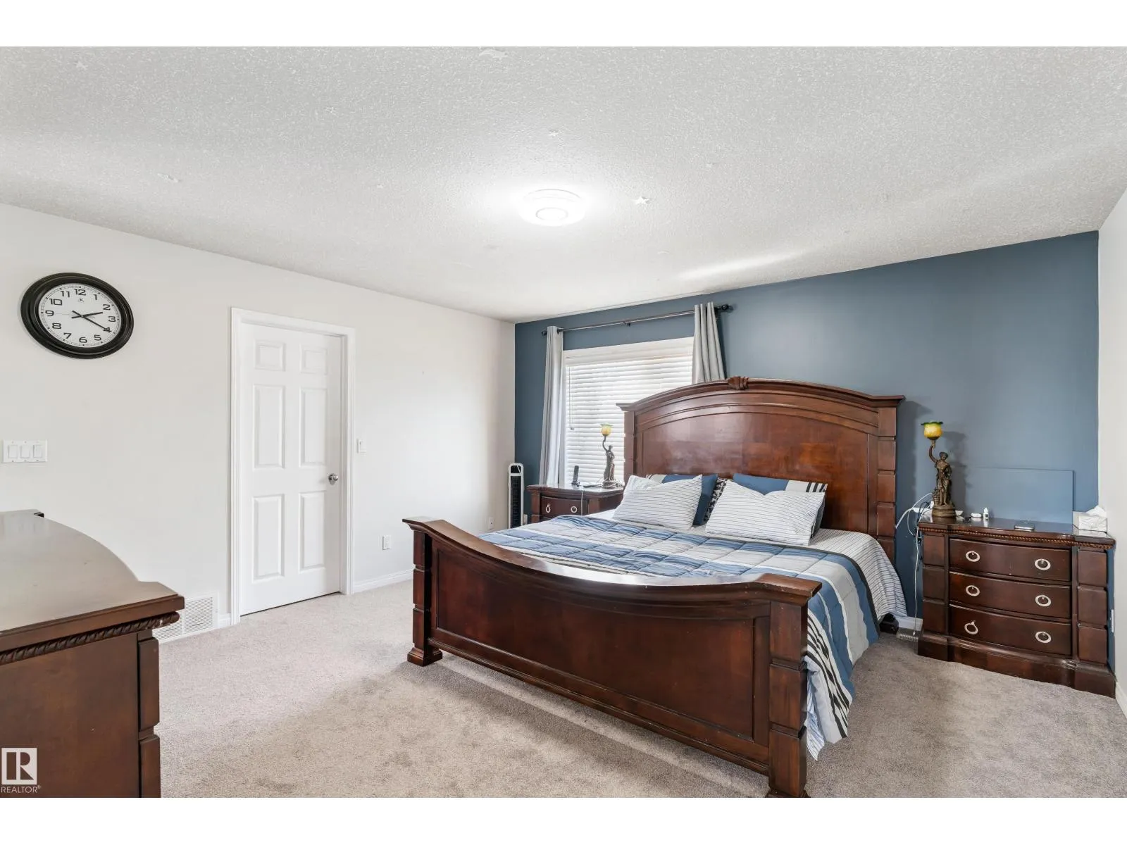 Welcome to this stunning two-storey family home featuring exceptional space and comfort. The main level showcases hardwood floors, a spacious living room with striking navy accent wall, and abundant natural light. The gourmet kitchen boasts rich oak cabinetry, center island with wine storage, stainless steel appliances, and breakfast nook overlooking the backyard. Enjoy the cozy double-sided fireplace connecting the kitchen