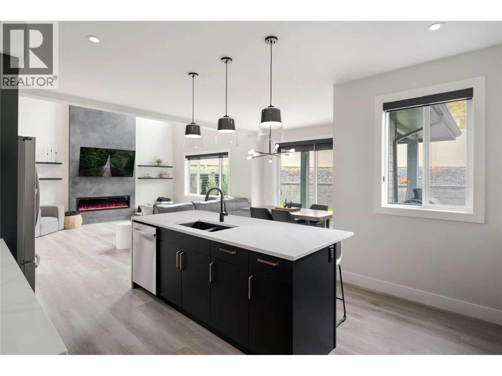Shows like new but without GST! Meticulously maintained, welcome to a home that combines style, convenience, and versatility. With a 1 bedroom legal suite, low-maintenance outdoor space and a phenomenal main living area this home is perfect for many. Welcoming you inside are soaring ceilings and large primary living spaces with a two storey fireplace anchoring the living room. The