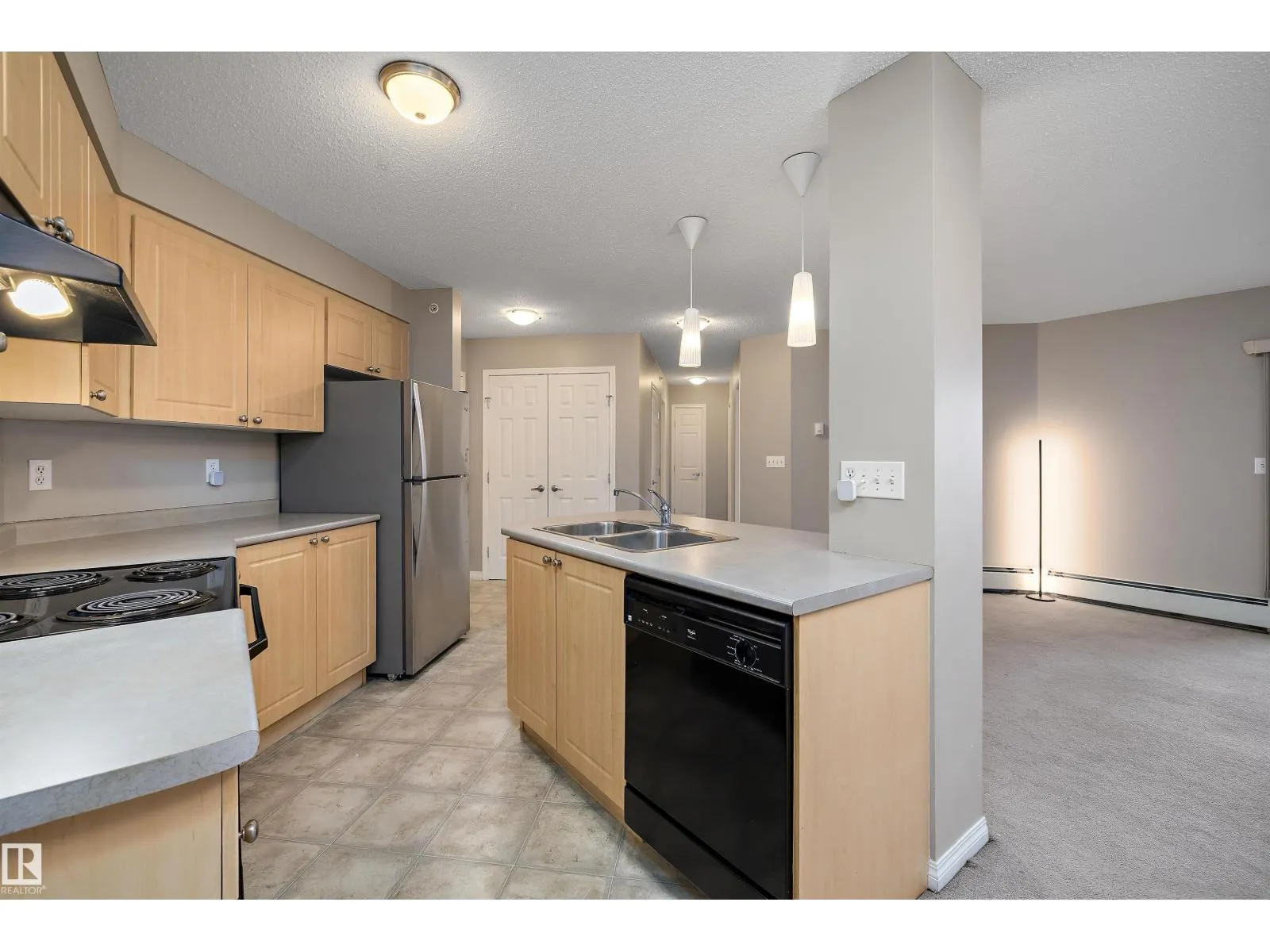 WELL MAINTAINED TOP-FLOOR CONDO IN A DESIRABLE SOUTH EDMONTON COMMUNITY. This bright unit features an open-concept living and dining area with direct access to a covered balcony—ideal for morning coffee, fresh air, or quiet evenings at home. The kitchen offers ample cabinetry and practical workspace, while two well-proportioned bedrooms provide flexibility for owners, guests, or a home office setup. A