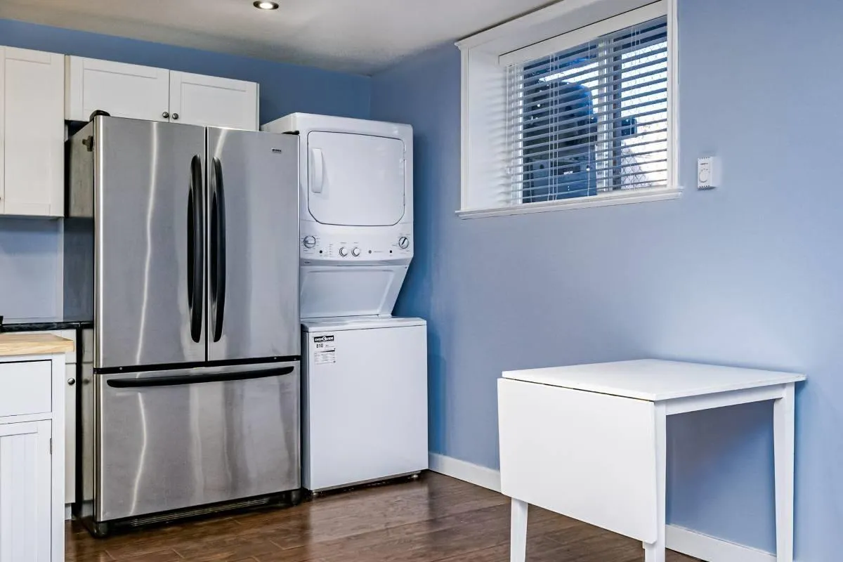 Bright and spacious approx. 1,200 sq ft 2-bedroom suite available now, featuring a large primary bedroom that fits a queen-size bed and furniture, a second bedroom ideal for a child’s room or home office, and a full bathroom with tub. Includes newer full-size appliances, in-suite washer and dryer, A/C, and a gas fireplace. Enjoy a private outdoor area with space