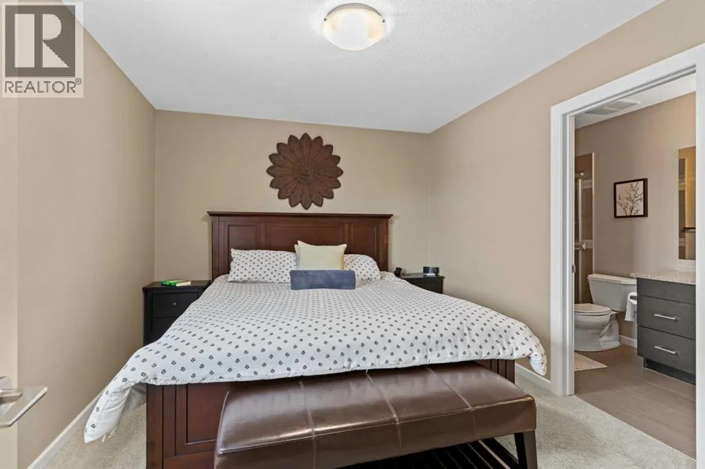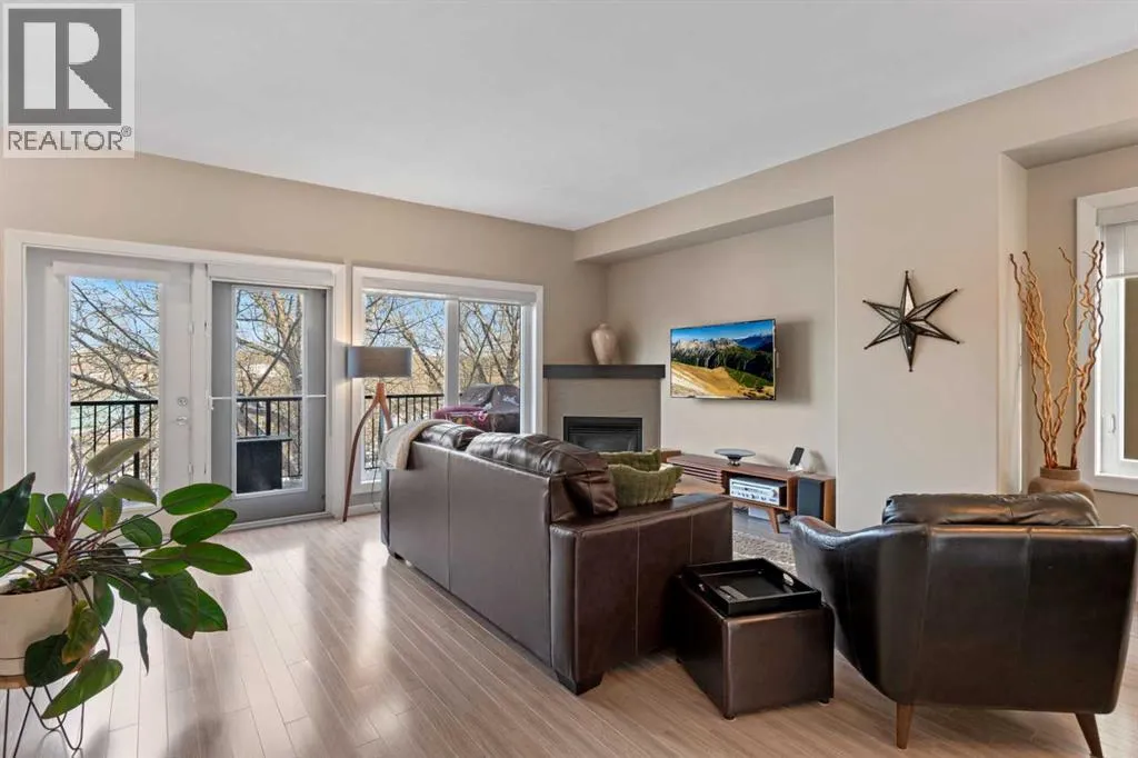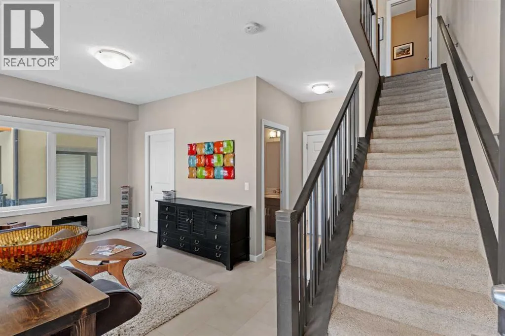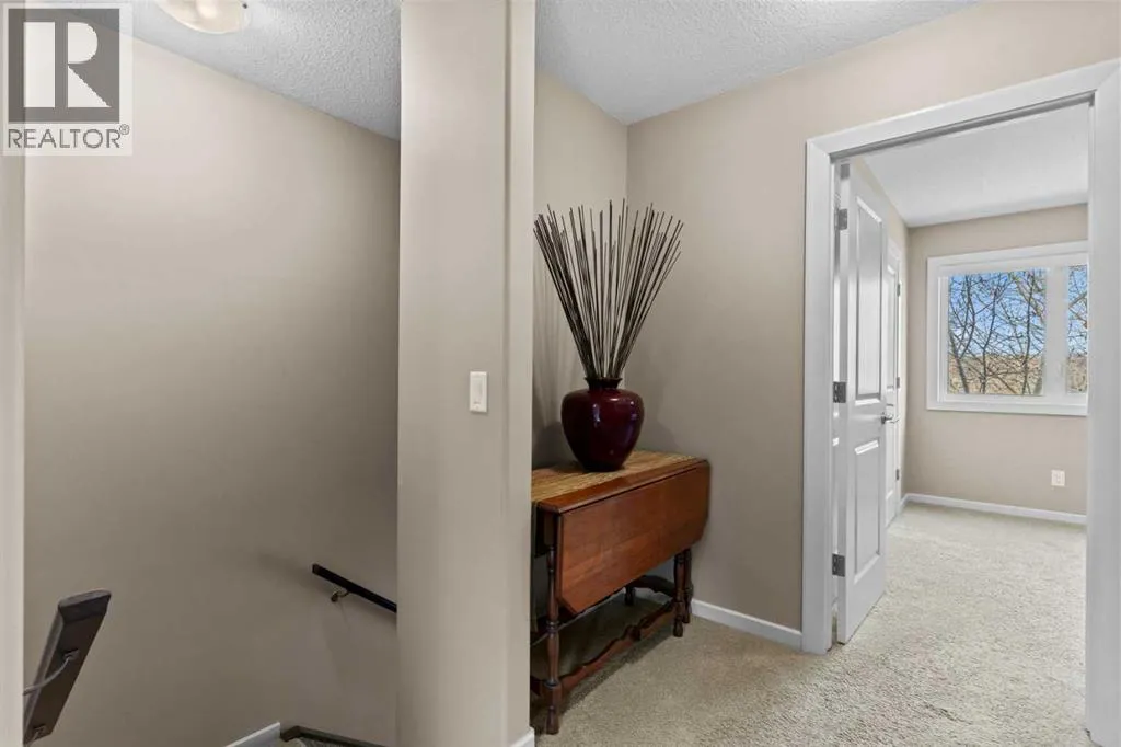 greets you with a cozy basement, 2-piece bath and direct access to the double garage. Tailored for an active adult lifestyle ESTATES OF VALLEY RIDGE is +18. In addition to 9′ ceilings and GLEAMING HARDWOOD throughout the MAIN FLOOR, an OPEN CONCEPT layout connects the living – dining room and kitchen. The kitchen is a GOURMET’S DREAM with tan quartz countertops, abundant cabinets, double sink, high-end STAINLESS-STEEL appliances with gas stove. The spacious dining area can easily accommodate a number of guests. The corner GAS FIREPLACE in the living room adds warmth and charm to the space. Just off the living room is a PRIVATE BALCONY, adding an outdoor living space of over 200 square feet, complete with BBQ gas line. Enjoy dining outdoors or just enjoy the serene GOLF COURSE and green space views. A 2-piece bathroom completes this floor. The UPPER LEVEL as a LARGE PRIMARY BEDROOM and sizeable WALK -IN CLOSET. It also includes 2 additional bedrooms for family and guests. Conveniently located on this level is the LAUNDERY/STORAGE ROOM with front loading washer and dryer, shelving and ample storage space. On the LOWER LEVEL a private COVERED PATIO overlooks the club house with easy access to the First Tee or walking path. The main entrance into the property is on this level, as well as access to the spacious DOUBLE CAR ATTACHED GARAGE. There is also space for 2 vehicles on the parking pad, as well there is visitor parking adjacent. A large versatile RECREATION/FLEX ROOM is just off the entrance and has been used as an exercise and TV room. There is a 2-piece bathroom and utility room on this floor. This home has been LOVINGLY CARED for and has been enjoyed by these owners. The LOCATION is one of the best in the city! Easy access to Highway 1 (2min) and approximate travel time Canmore (45min); city center (25min); bus transit (3min); Tuscany LRT (11 min); Stoney Trail (3 min); YYC airport (30 min). Valley Ridge is a STRIKINGLY BEAUTIFUL COMMINITTY with over 50% GREEN SPACE, wildlife and many outdoor activities to enjoy. Please contact your REALTOR and arrange a viewing of this gorgeous townhouse. ” Sellers are open to selling all the furniture if needed” . It also comes with a new AC & Hot water tank. (id:64429)
