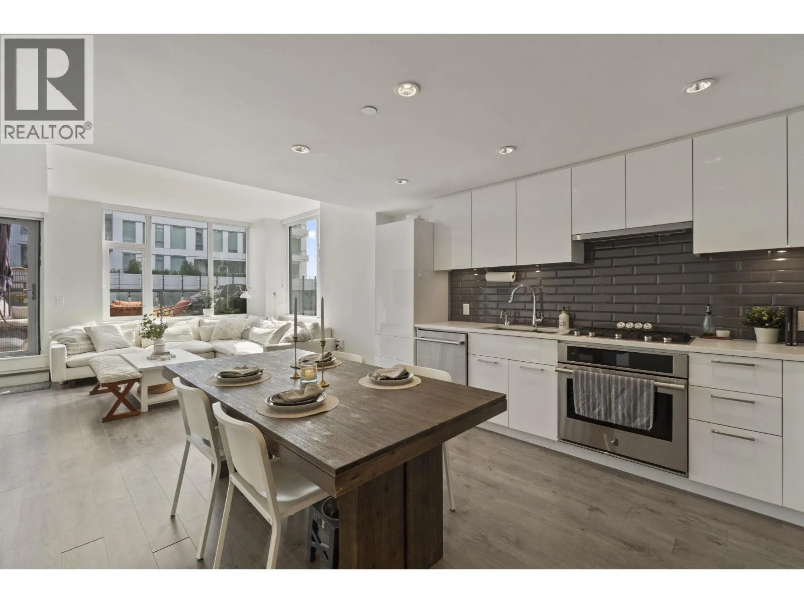 INCREDIBLE VALUE! Exceptional $/SQFT on this rare 2-level south-facing condo that lives like a townhome. Offering 2 bed+den, 3 bath, a bright, functional layout ideal for families or working professionals. The main level features an open-concept living space with a gourmet kitchen with gas range, instant hot water, and stainless steel appliances, opening onto a spacious balcony with gas BBQ