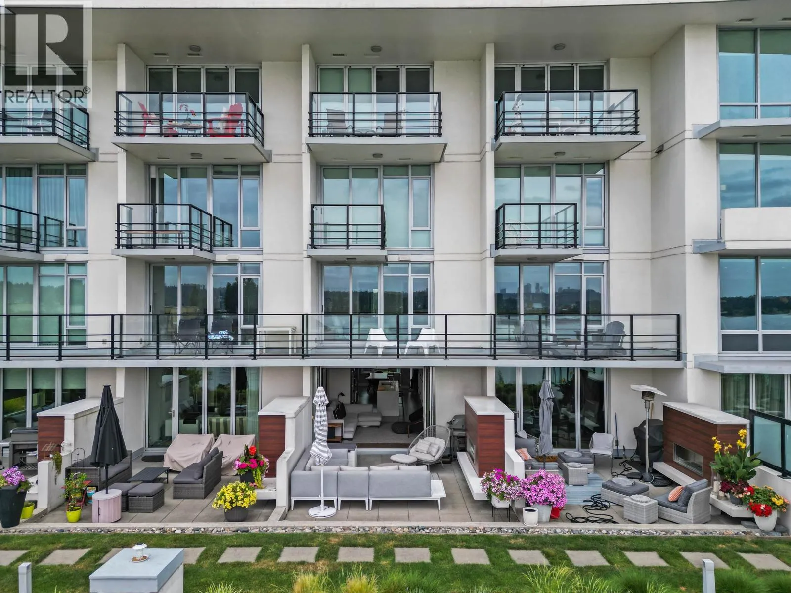 Experience waterfront living at The Peninsula by Aragon Properties, an iconic concrete building in the heart of Port Royal. This spacious 2-level waterfront townhome offers an oversized walkout private patio with stunning water views, gas bib, and fireplace-ideal for year-round entertaining. Inside features Gaggenau appliances, floor-to-ceiling windows, geothermal heating/cooling, and spa-inspired bathrooms with heated floors. Includes 2 parking stalls and